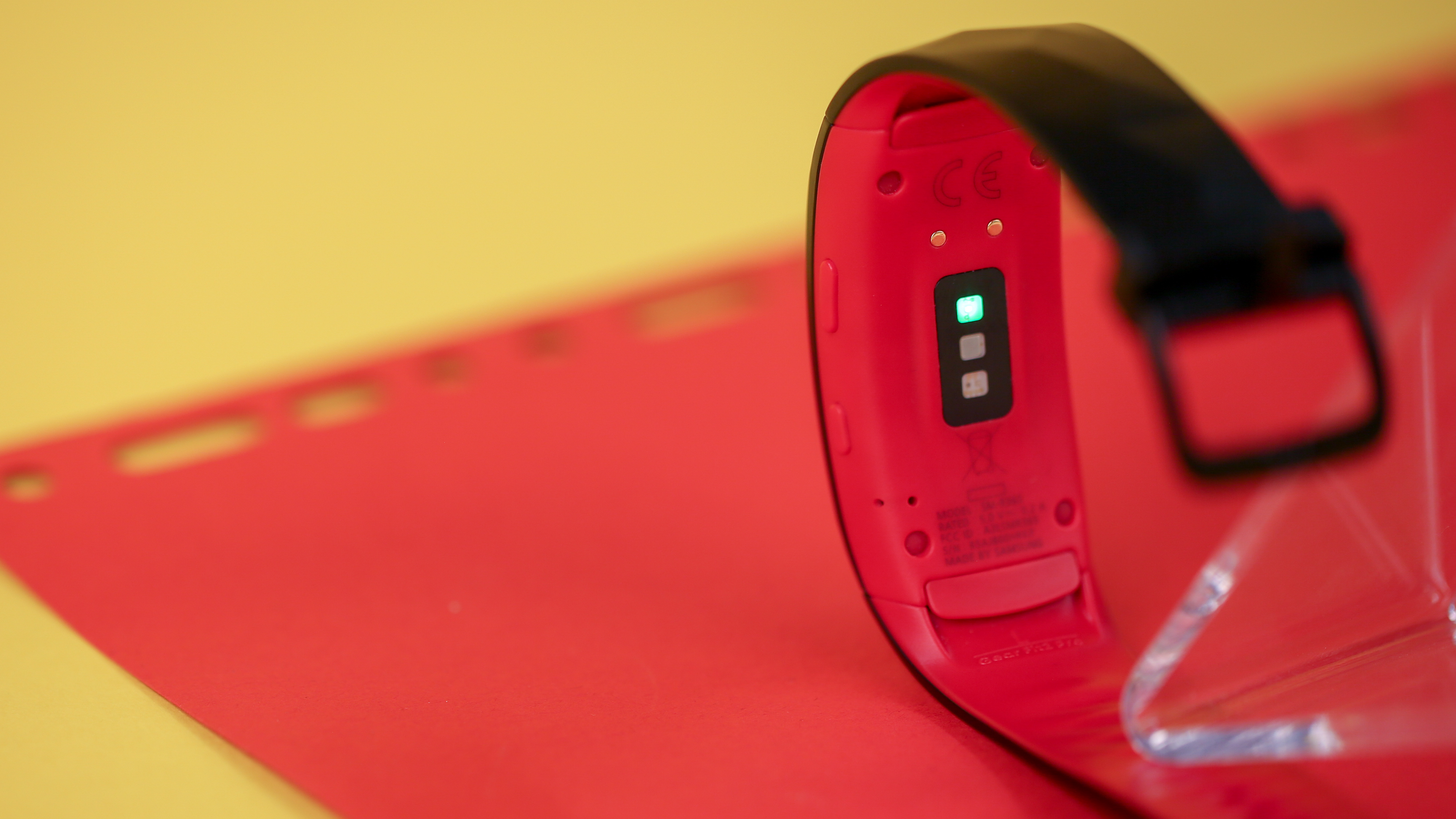 Die Gear Fit Pro 2 ist bislang der größte Fitness-Tracker, den wir im Test hatten. Den größten Teil nimmt dabei der scharfe Oled-Bildschirm ein. Dieser bietet knackige Farben und zeigt Informationen scharf an. Das sieht toll aus, auch weil Samsung stark auf farbige Kontraste zum schwarzem Hintergrund setzt.
