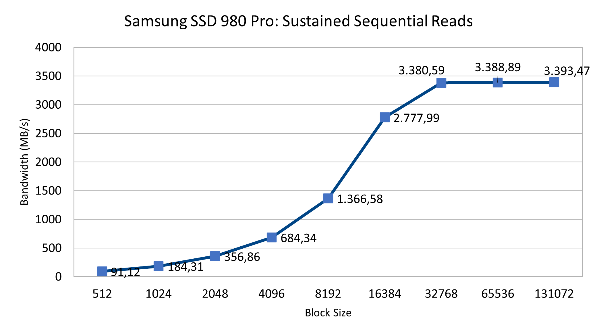 Die spannendste Zahl dürften die Lese- und Schreibwerte sein. Und ja, besonders beim sequenziellen Lesen von Daten gibt es große Unterschiede zwischen PCIe 3.0 und PCIe 4.0 Das Intel-System schafft knapp 3400 MByte/s, beim AMD-System sind es immerhin fast 5800 MByte/s. Beim Schreiben liegen Plattformen deutlich näher beieinander. Allerdings erreicht PCIe 4.0 bei deutlich kleineren Blockgrößen einen Wert von über 1000 MByte/s, was sich im Alltag wahrscheinlich eher bemerkbar macht.