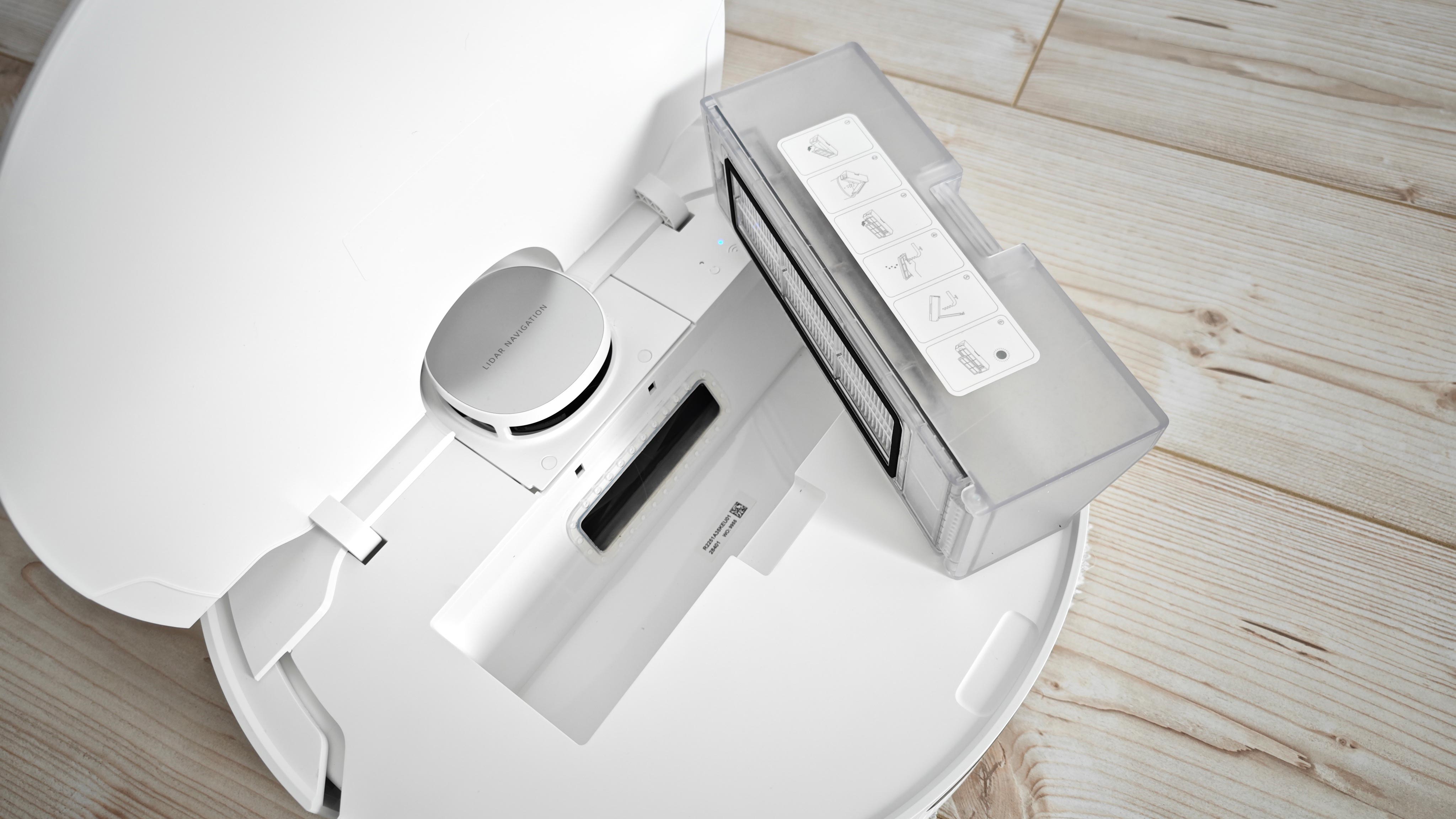 An der Reinigungsleistung gibt es nach der guten Navigation ebenfalls nichts zu beanstanden. Der Roboter bietet nach Herstellerangabe 4000 Pa Saugleistung, die er beim Befahren von Teppichboden automatisch abruft. Damit sorgt er für insgesamt exzellente Reinigungsleistung sowohl auf Hartboden als auch auf Auslegeware. Einziger Nachteil: Den Schmutz müssen Nutzer manuell aus dem internen Staubbehälter des Roboters entleeren. Langhaarteppiche sind zudem wie bei der Konkurrenz die Nemesis des L10 Prime, da er sich hier schnell verheddern kann. Übrigens werden die beiden drehenden Wischmopps des Roboters beim Befahren von Teppich um etwa 7 Millimeter angehoben. Das reicht auf niedrigflorigen Brücken und Läufern absolut aus, bei größerer Fadenlänge kann der Teppich dennoch leicht feucht werden. Groß ist der Unterschied zu den meisten Konkurrenten hier aber nicht.