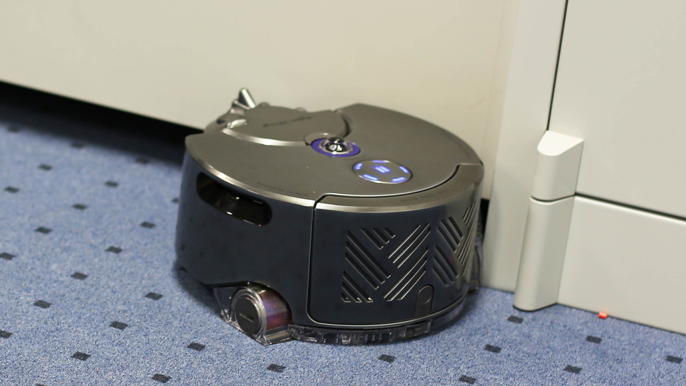 Durch die geringe Breite passt der Dyson problemlos zwischen Stuhlbeinen hindurch. Andere Testgeräte, wie das Modell von Pearl, haben die Stühle umfahren. Insgesamt klappt die Orientierung per Kamera und IR-Sensoren erfreulich gut. Der Sauger bemerkt Treppenabgänge ohne abzustürzen und knallt auch ohne Berührungssensoren nicht gegen die Wände.