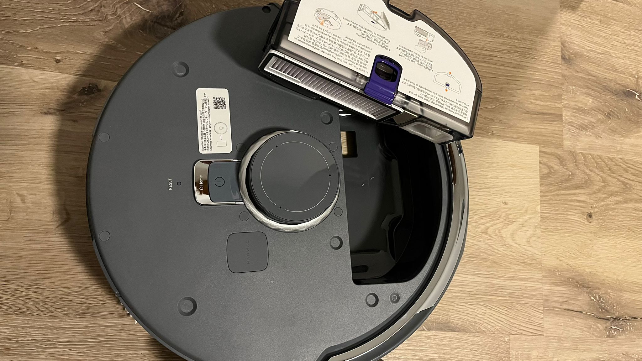 Für die Inbetriebnahme des Narwal Freo Z Ultra sollten sämtliche Möbel an ihrem üblichen Platz stehen. Außerdem mussten wir alle Türen öffnen und die Bereiche frei halten, in denen der Narwal Freo Z Ultra reinigen soll. Wir brauchten kein zusätzliches Licht, da der Roboter, im Gegensatz zu den meisten anderen Saug- und Wischrobotern, mit seinem eigenen Licht auch im Dunkeln fahren kann. Die Bedienung des Roboters erfolgt mithilfe der App Narwal Freo. Die App ist für iOS und Android kostenlos erhältlich. Einen QR-Code mit Direktlink zur App findet man im Benutzerhandbuch oder am Gerät.