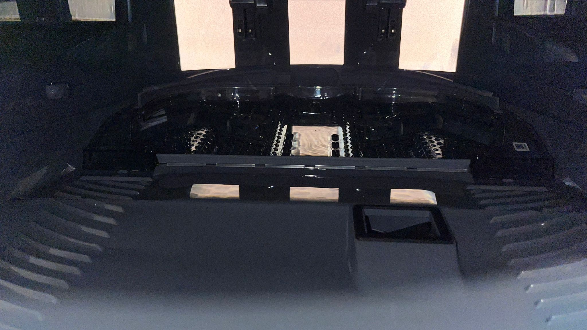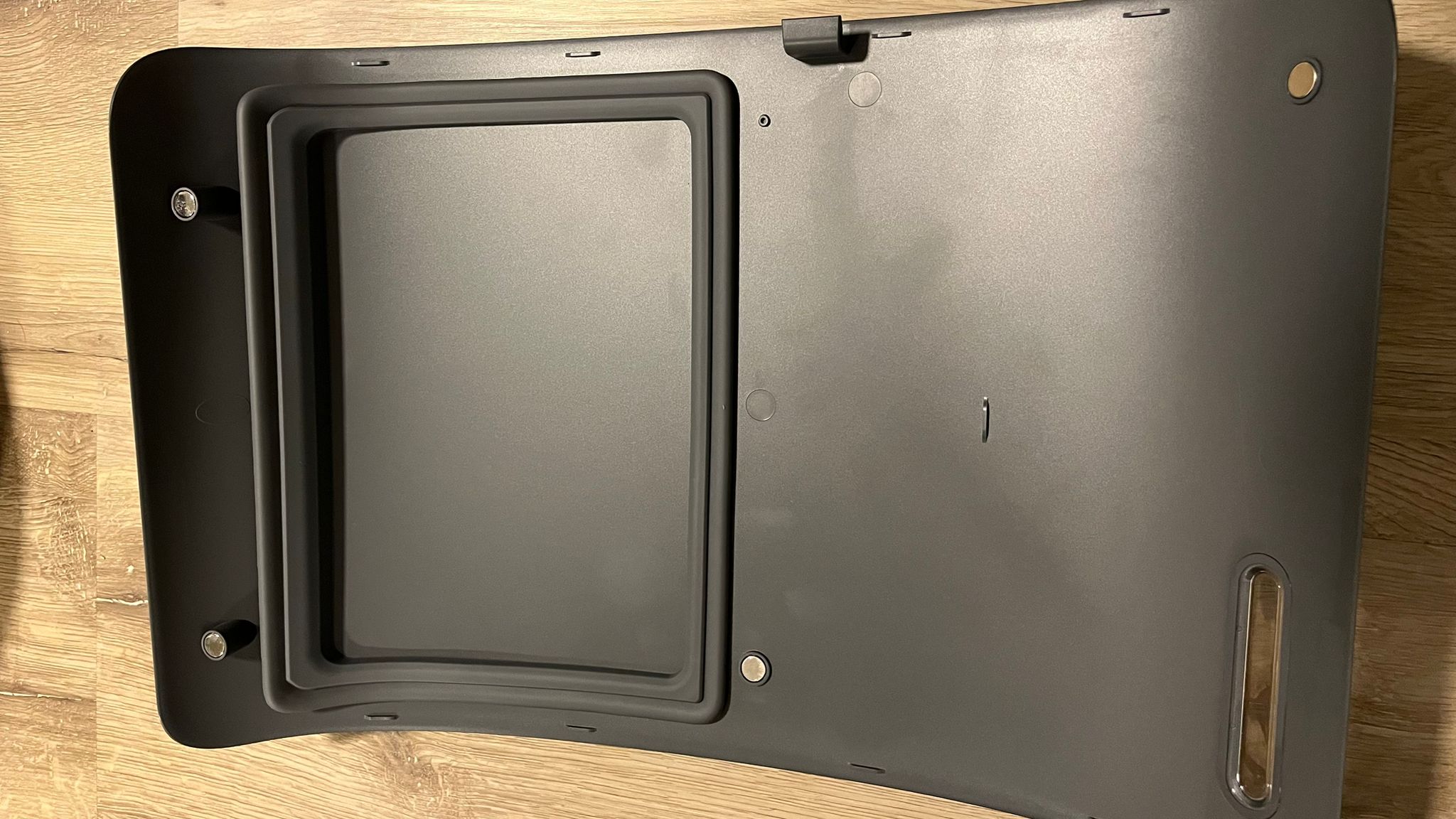 Unser Testgerät Narwal Freo Z Ultra ist im Grunddesign mattgrau. Im Onlineshop des Herstellers gibt es den Narwal Freo Z Ultra zum Testzeitpunkt in Dunkelgrau und in Weiß mit hellgrauen Akzenten. Die Größe des Roboters ist im Vergleich zu unseren anderen Testmodellen durchschnittlich, die Reinigungsstation ist mit 38 cm Tiefe x 42 cm Breite x 45,5 cm Höhe eher als normal bis groß einzuordnen. Sie lässt sich vermutlich nicht in jedem kleineren Haushalt ohne Weiteres unterbringen. Neben dem grauen modernen Design hat die Station eine dezente LED-Beleuchtung an der Oberseite. Im Inneren der Station befinden sich die Tanks für Frisch- und Abwasser. Nimmt man an der Front der Station die Klappe ab (diese ist mit fünf Magneten befestigt), kann dort Reinigungsmittel aufgefüllt werden. Bei unserem Testgerät war das Reinigungsmittel im Lieferumfang bereits enthalten. Es wird automatisch dem Frischwasser des Roboters zugesetzt.