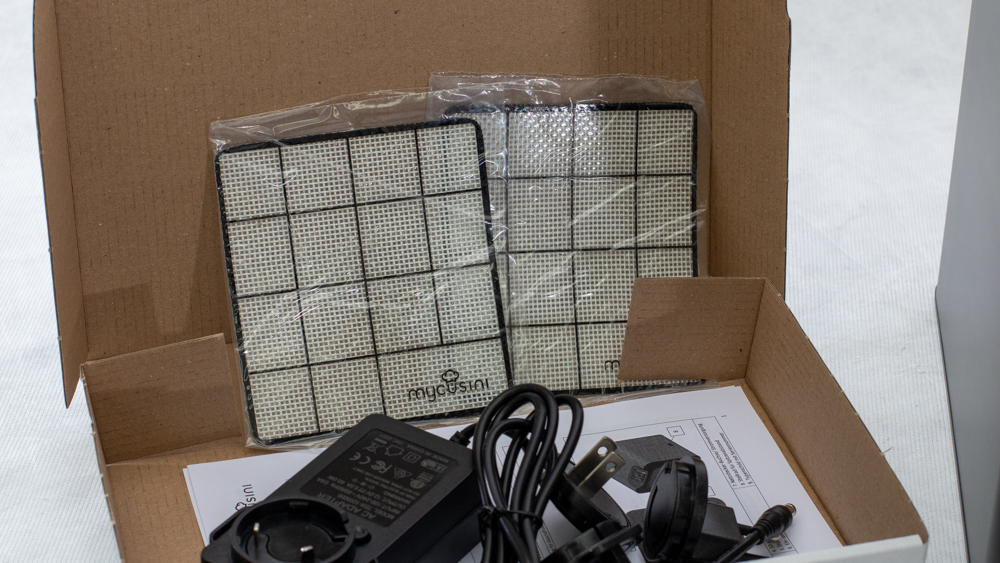 Zu der Ausstattung gehören auch zwei Silikonmatten, die die Druckauflagen bilden. Zwei präzise gefertigte Edelstahlkartuschen und ein Plastikhalterung mit Metall-Inlay, der die Edelstahlkartusche später auf Temperatur bringt, bilden den Druckkopf. Eine SD-Karte mit über 1000 Druckvorlagen, eine kleine Plastikpinzette und ein Handbuch mit allen Druckmodellen gehören ebenfalls zum Lieferumfang. Mit dem Kauf eines mycusini 2.0 erhält man zudem Zugang zu der Internetseite mycusini-Club. Dort kann man weitere Druckvorlagen selbst gestalten oder herunterladen.
