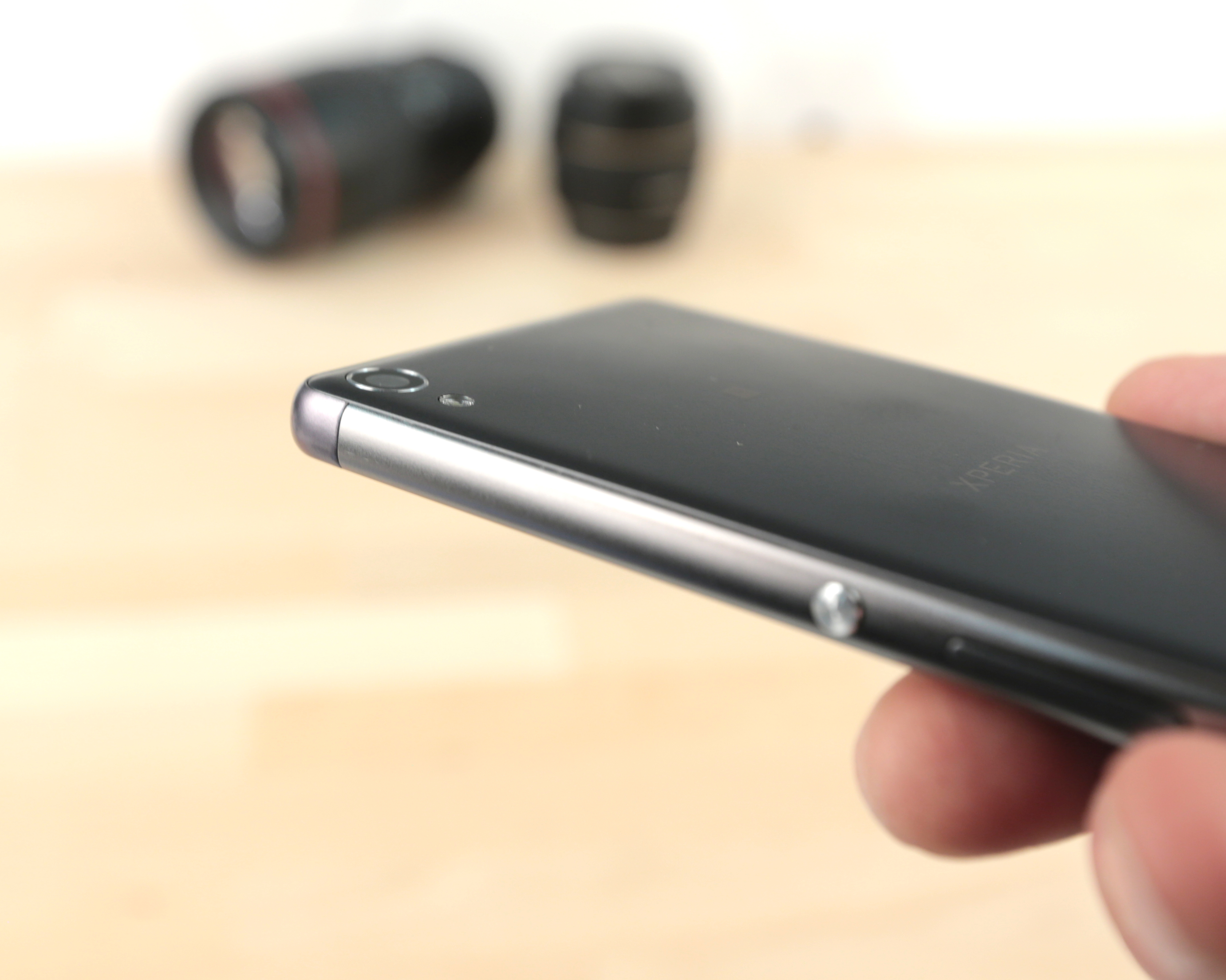 Im ersten Moment nach dem Auspacken waren wir uns zuerst nicht sicher, ob uns Sony nicht versehentlich ein falsches Gerät geschickt hat. Es sollte hier um ein günstiges Einsteigergerät gehen; was da nun aber auf dem Schreibtisch liegt, sieht vielmehr nach einem Highend-Smartphone der gehobenen Preisklasse aus. Ein beinahe randloses Display, abgerundete Kanten und eine voll verglaste Oberseite. Extrem sexy, trotz Kunststoff-Rückseite. Sehr positiv finden wir die bündig verbaute Kameralinse, welche nicht aus dem Gehäuse herausragt. Die Spaltmaße sind absolut gleichmäßig und sehr klein gehalten.