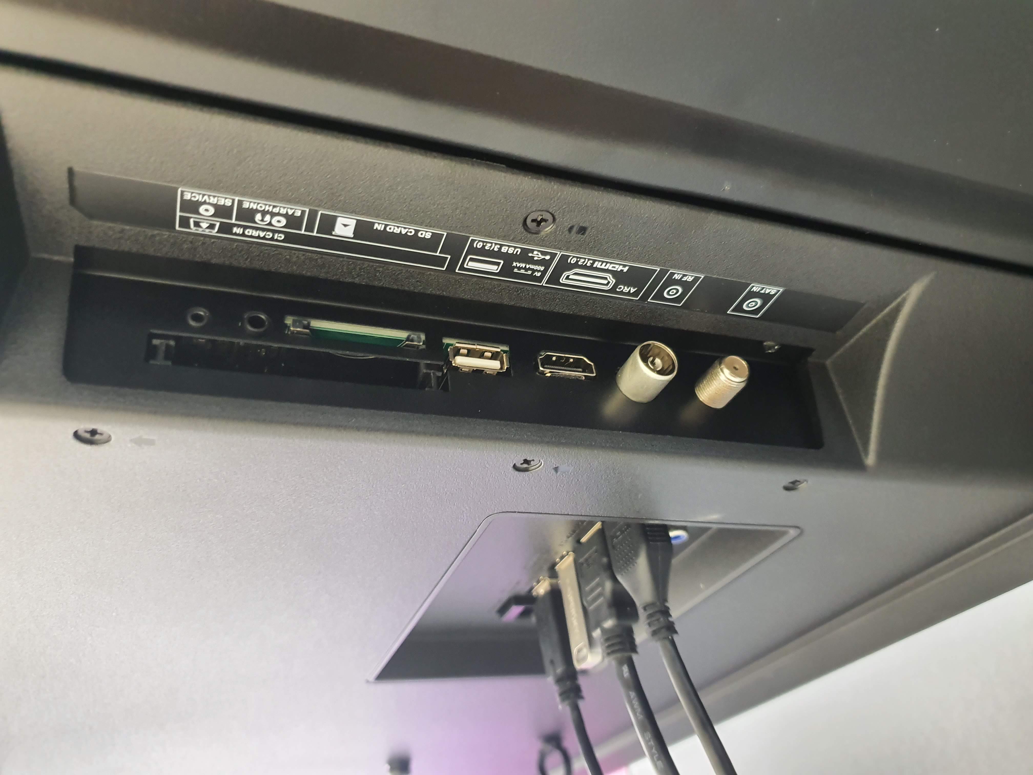 Die Anschlüsse sind seitlich und auf der Rückseite. Je nach Platzierung sind vor allem die Anschlüsse auf der Rückseite etwas schwerer zu erreichen, entsprechend sollte man nicht zu häufig umstecken. Die Anschlüsse sind nicht allzu viel, bis zu drei HDMI-Geräte finden am TV Platz. Ein Anschluss ist mit HDMI ARC, eignet sich also für eine Soundbar oder ähnliches.