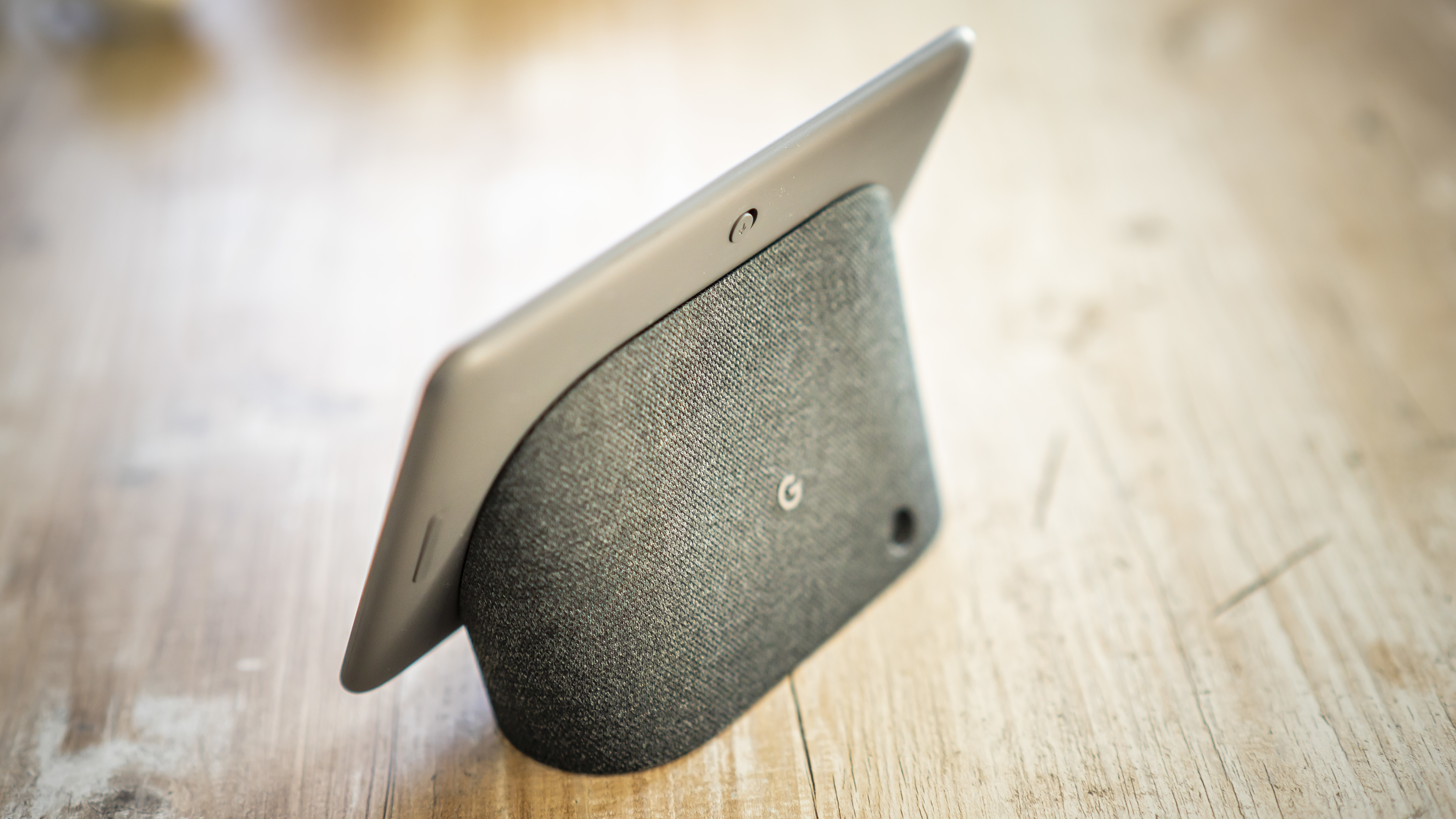 Auf der Rückseite des Nest Hub ist ein Schalter zum Deaktivieren des Mikrofons sowie eine Wippe zum Einstellen der Lautstärke angebracht. Die übrige Eingabe erfolgt per Berührung, Sprache und per App auf dem Smartphone.