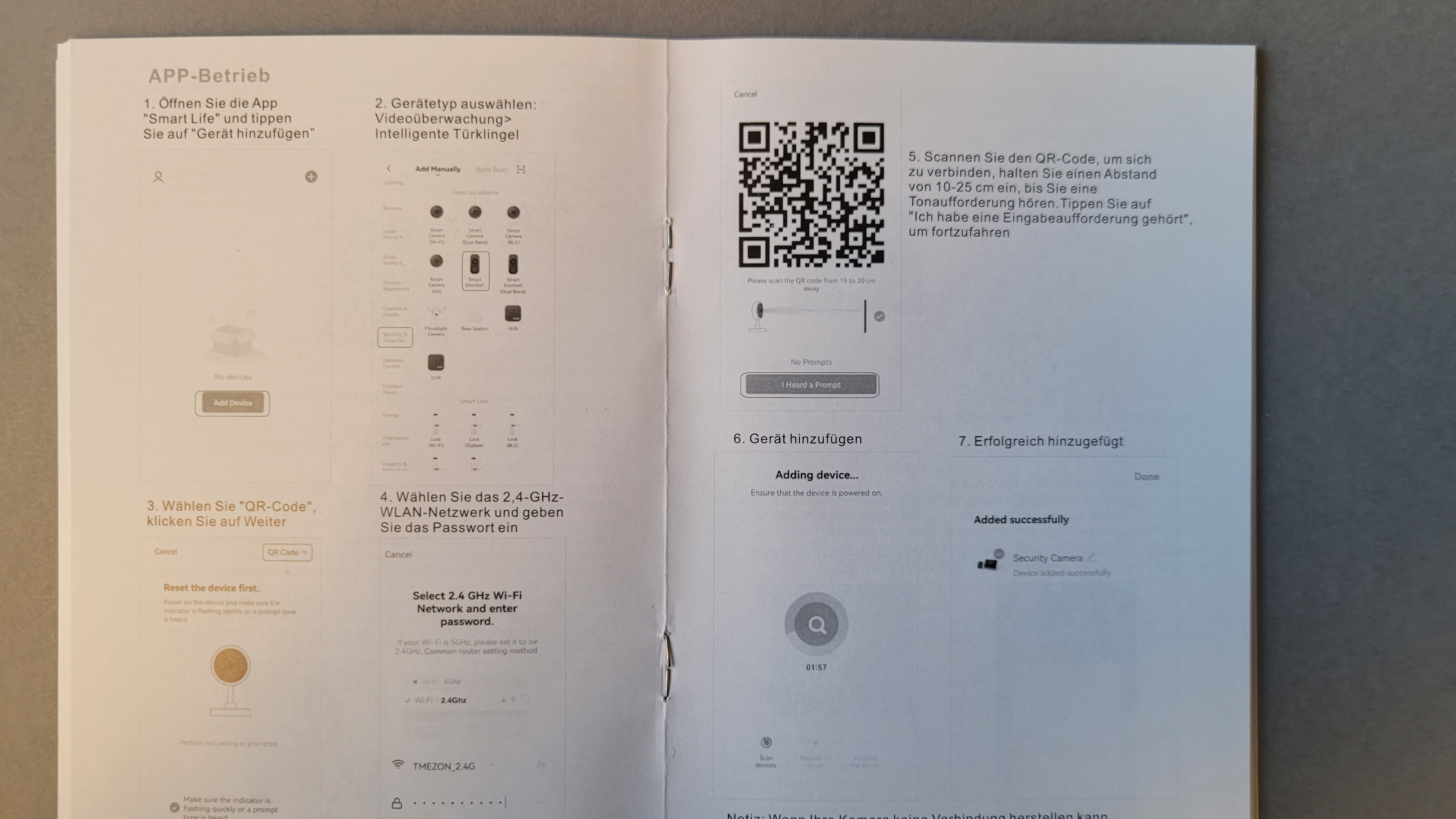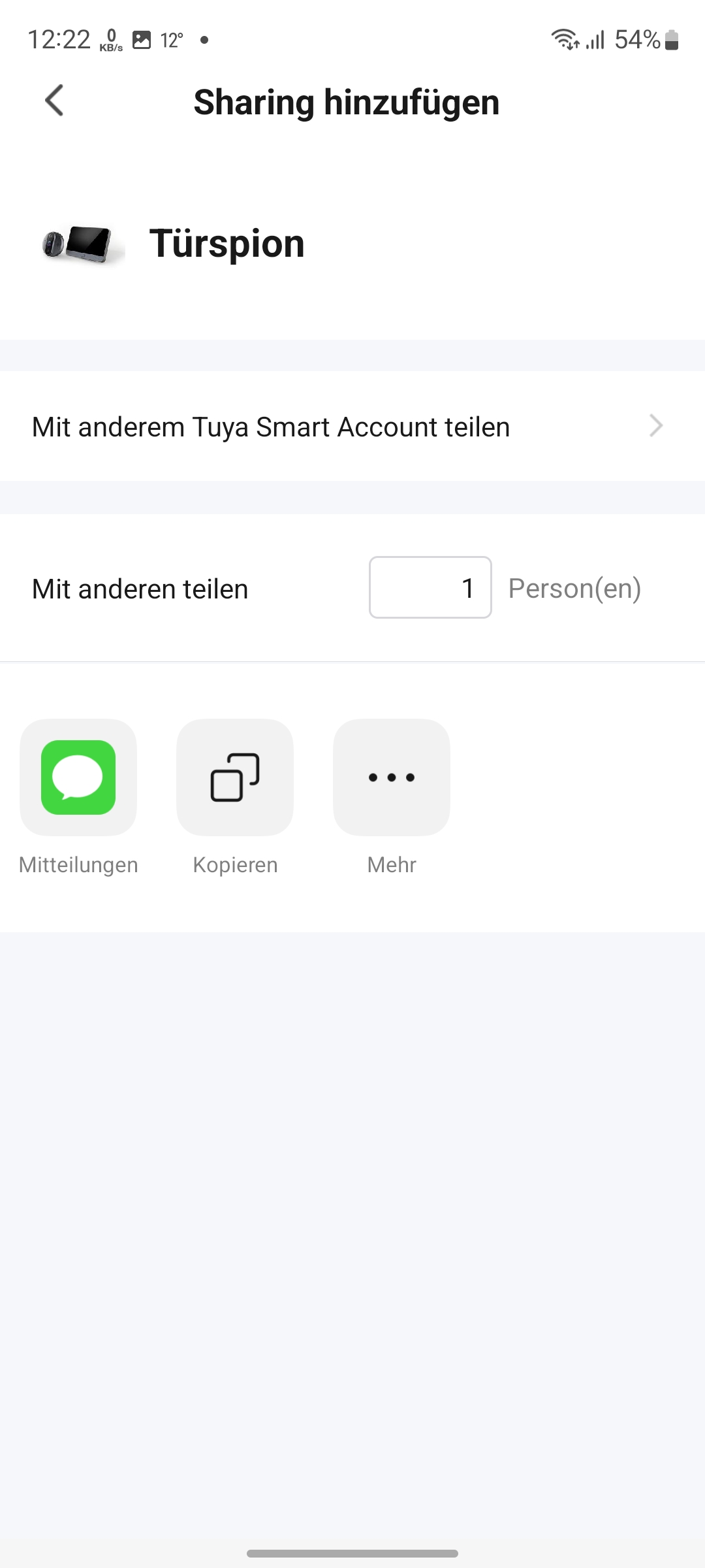 Offiziell empfiehlt das Handbuch, den Türspion mit der Smart-Life-App in Betrieb zu nehmen. Da wir allerdings schon einige Tuya-Komponenten mit der ebenfalls zur Tuya-Plattform kompatiblen App Tuya Smart betreiben, verwenden wir für diese auch für die Steuerung des Türspions. Das hat den Vorteil, dass man bereits verwendete Tuya-Komponenten für Automatisierungen in Kombination mit dem Türspion kombinieren können.