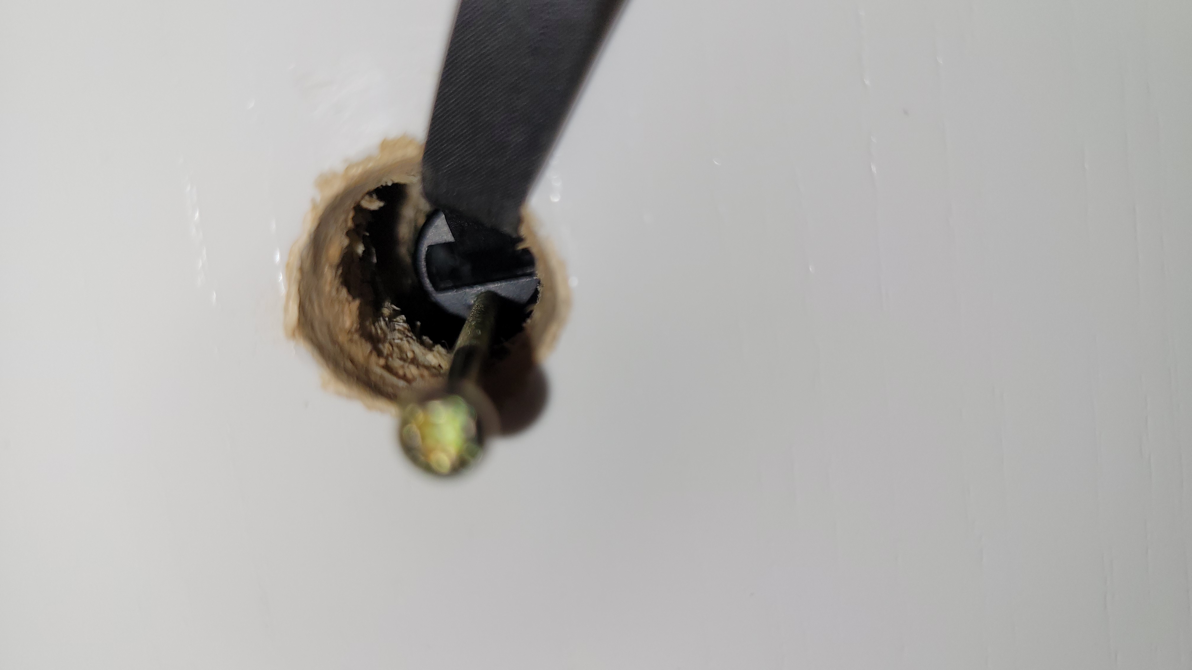 Um den digitalen Türspion Tmezon MZ-DV-11 montieren zu können, muss das vorher genutzte Modell entfernt werden. Den klassischen, bislang genutzten Türspions haben wir bereits für den Test der Ezviz CP4 (Testbericht) entfernt. Daher war der Austausch mit dem MZ-DV11 problemlos. Schließlich hatten wir bereits den Türspion-Kanal mit einer Bohrmaschine verbreitert, sodass der Einbau der Außeneinheit zunächst problemlos verläuft. Die zur Halterung gedachte Metallplatte wird mit zwei Schrauben mit der Außeneinheit von Innen verschraubt. Im Test verläuft das allerdings nicht unproblematisch, da der Widerstand beim Verschrauben zunächst zu groß war. Erst nachdem wir die Außeneinheit wieder entfernt und die zur Befestigung gedachten Schrauben vormontiert und anschließend von Außen in den Türspion-Kanal eingesetzt haben, lassen sich von Innen die Schrauben zur Halterung der Metallplatte fest anziehen. Anschließend wird das Flachbandkabel der Außeneinheit über eine Buchse im Displaygehäuse verbunden. Nun wird dieses von oben in die Halterung eingesetzt. Außen- und Innen-Einheit sind somit miteinander verbunden und sitzen stabil (siehe auch Bildergalerie).