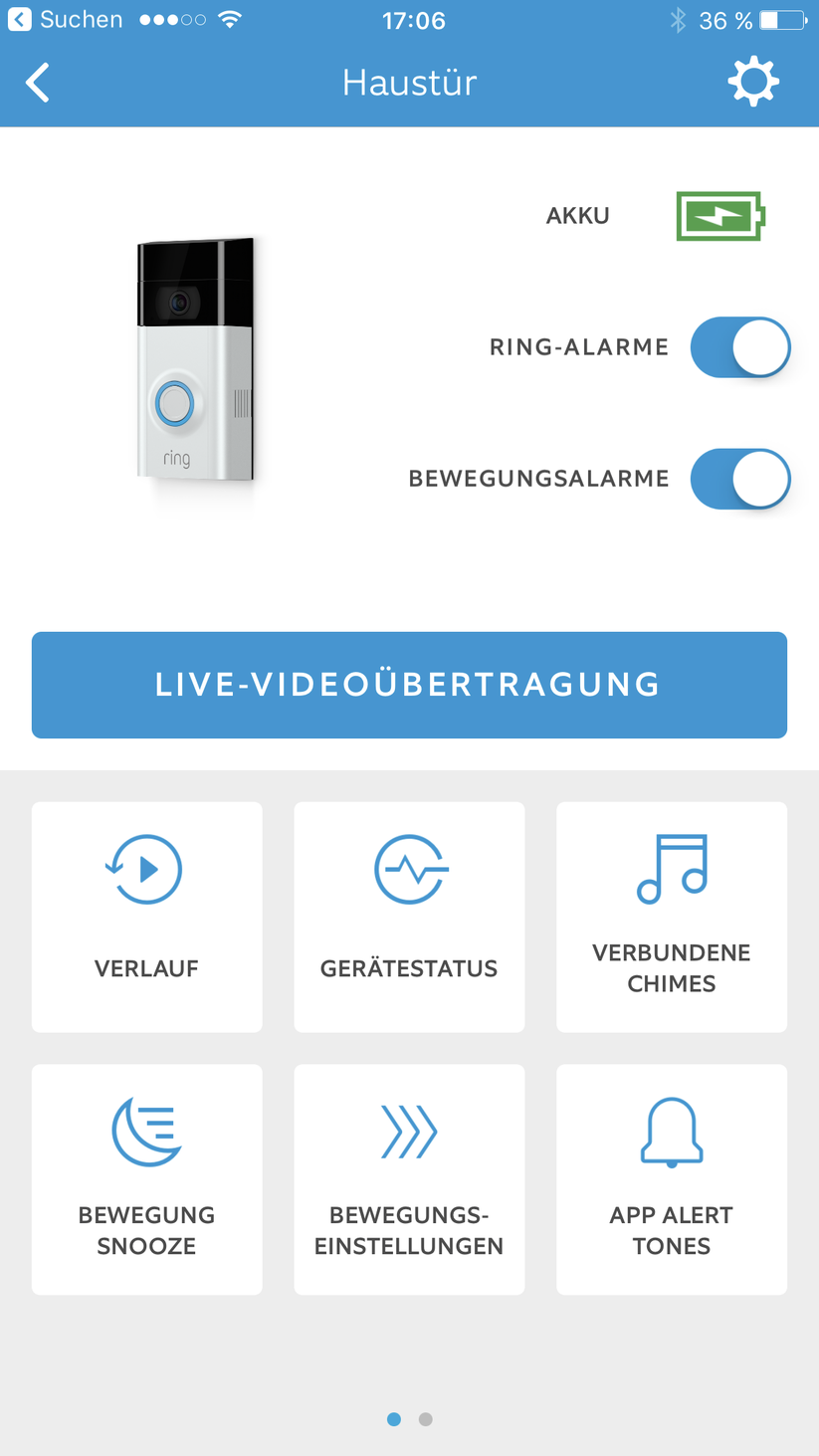 Nach der Einrichtung kann es losgehen. Ein Druck auf den Taster lässt den Gong im Inneren des Hauses läuten, fast gleichzeitig erscheint eine Push-Nachricht auf dem verbundenen Smartphone. Wer möchte, kann auch mehrere Handys oder Tablets anbinden. Dass beim Druck auf die Klingel auch die Ring-Außeneinheit läutet, ist zumindest ungewöhnlich.