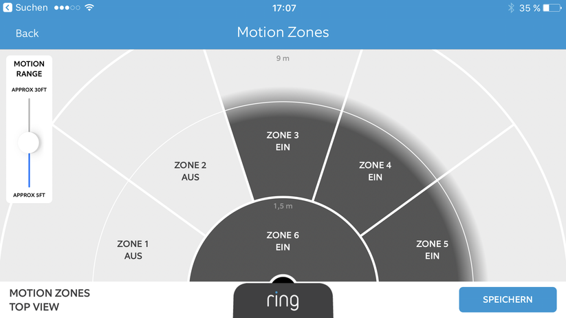 In der Handy-App kann man einen eingehenden „Ring“, wie der Hersteller die Klingel-Meldungen nennt, dann beantworten. Dabei baut die App zunächst eine Video- und Audioverbindung von der Haustür zum Handy auf. Leider dauert das in der Praxis oft so lange, dass man auch schon selbst zur Tür gelaufen ist: Zwischen dem Druck auf den Knopf und der Sichtverbindung liegen gut und gerne 10 Sekunden.