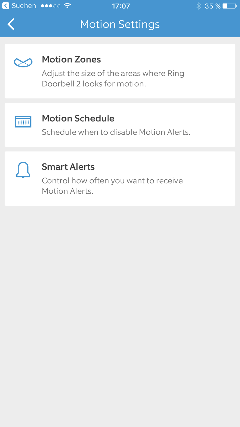 Allerdings stellt Ring die Belichtungsoptionen der Kamera erst dann passend ein, wenn die Verbindung bereits aufgebaut ist. Zusätzlich zur Wartezeit vergehen noch mal 1 bis 2 Sekunden, bis das Bild auch wirklich gut aussieht. Wer möchte, bekommt eine zusätzliche Push-Nachricht aufs Handy, wenn der Bewegungsmelder anspricht. Obwohl Ring 2 laut Hersteller mit einem PIR-Sensor ausgestattet ist, haben diverse Schneeflocken eine Bewegungserkennung und somit eine Push-Nachricht ausgelöst. Hier hilft es, die Empfindlichkeit herunter zu schrauben.