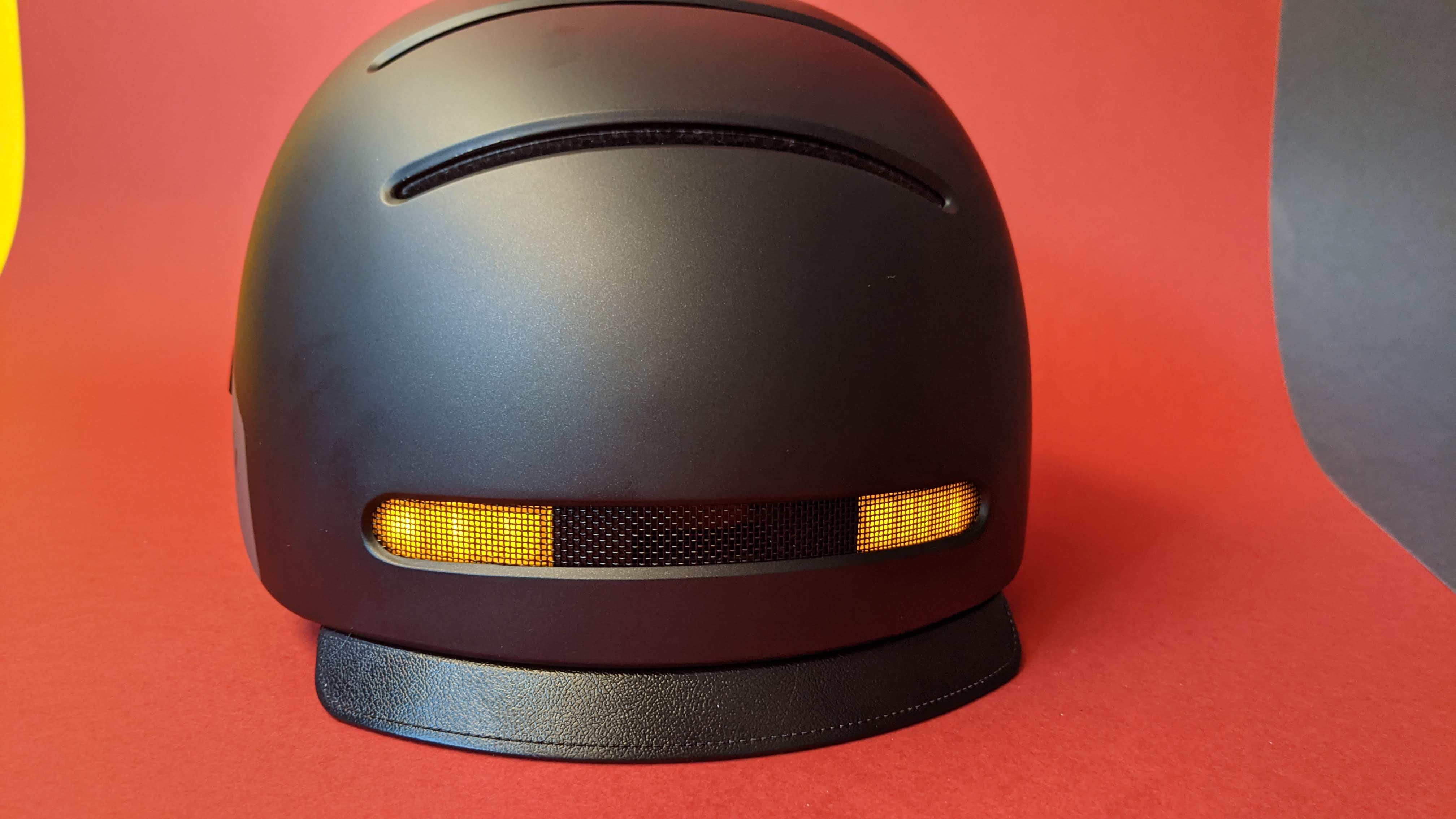 Vorne und hinten hat der Helm integrierte LED-Leuchten. Leider lassen sie sich in der App nicht dauerhaft einschalten, sondern nur in verschiedenen Blink-Modi betreiben. Praktisch ist, dass Bewegungssensoren im Helm beim Bremsen ein Bremslicht aktivieren. Sie erkennen auch heftige Erschütterungen wie bei einem Unfall und benachrichtigen dann einen hinterlegten Notfallkontakt.