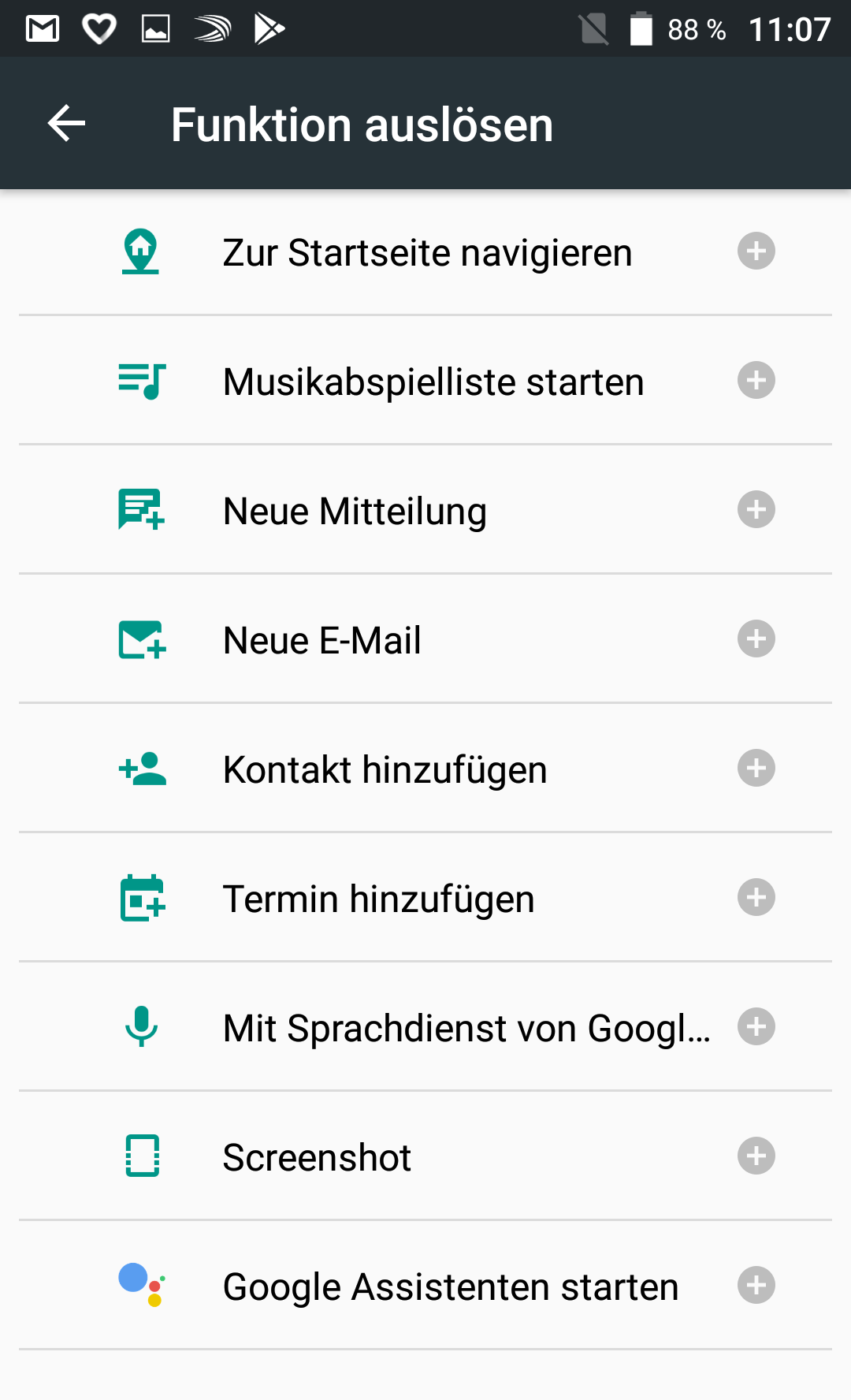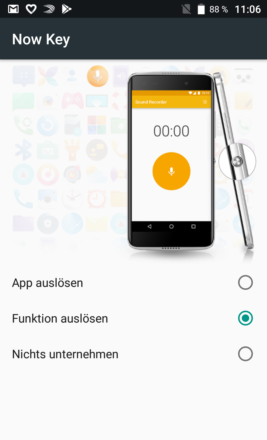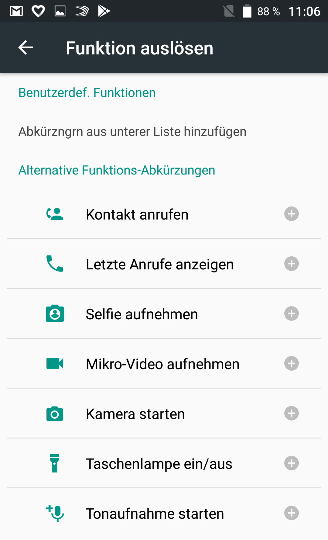 Neben einem Fingerabdrucksensor auf der Rückseite, gehört noch ein Schnellzugriffstaster auf der rechten Seite zur Ausstattung. Der wird auf Wunsch mit einer App der Wahl oder einer der zur Verfügung stehenden Funktionen belegt. Die entsprechende Liste ist recht lange und beinhaltet unter anderem die Optionen Neue E-Mail, Screenshot, Google Assistant starten, Musikabspielliste starten, Taschenlampe ein/aus und Letzte Anrufe anzeigen .