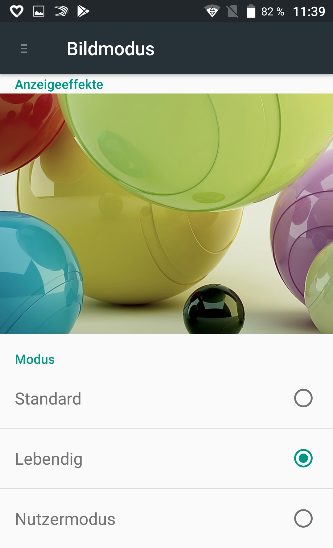 Das 5,2 Zoll große Display des Alcatel Idol 5s löst 1920 × 1080 Pixel auf und bietet so eine ausreichend scharfe Darstellung von Inhalten mit seiner Pixeldichte von 423 ppi. Geschützt ist das IPS-Panel durch an den Seiten leicht abgerundetem 2.5D-Glas. Die Blickwinkelstabilität ist sehr gut und auch die Farbwiedergabe hat uns gefallen. Allerdings nicht in der Einstellung Standard , die in den Systemeinstellungen des Bildschirms ausgewählt ist. Dort kann der Nutzer auch auf Lebendig umschalten, was uns besser gefallen hat. Wer möchte, der stellt Kontrast, Sättigung, Farbtemperatur und mehr seinen Wünschen gemäß im Detail über den erweiterten Modus (Nutzermodus ) ein.