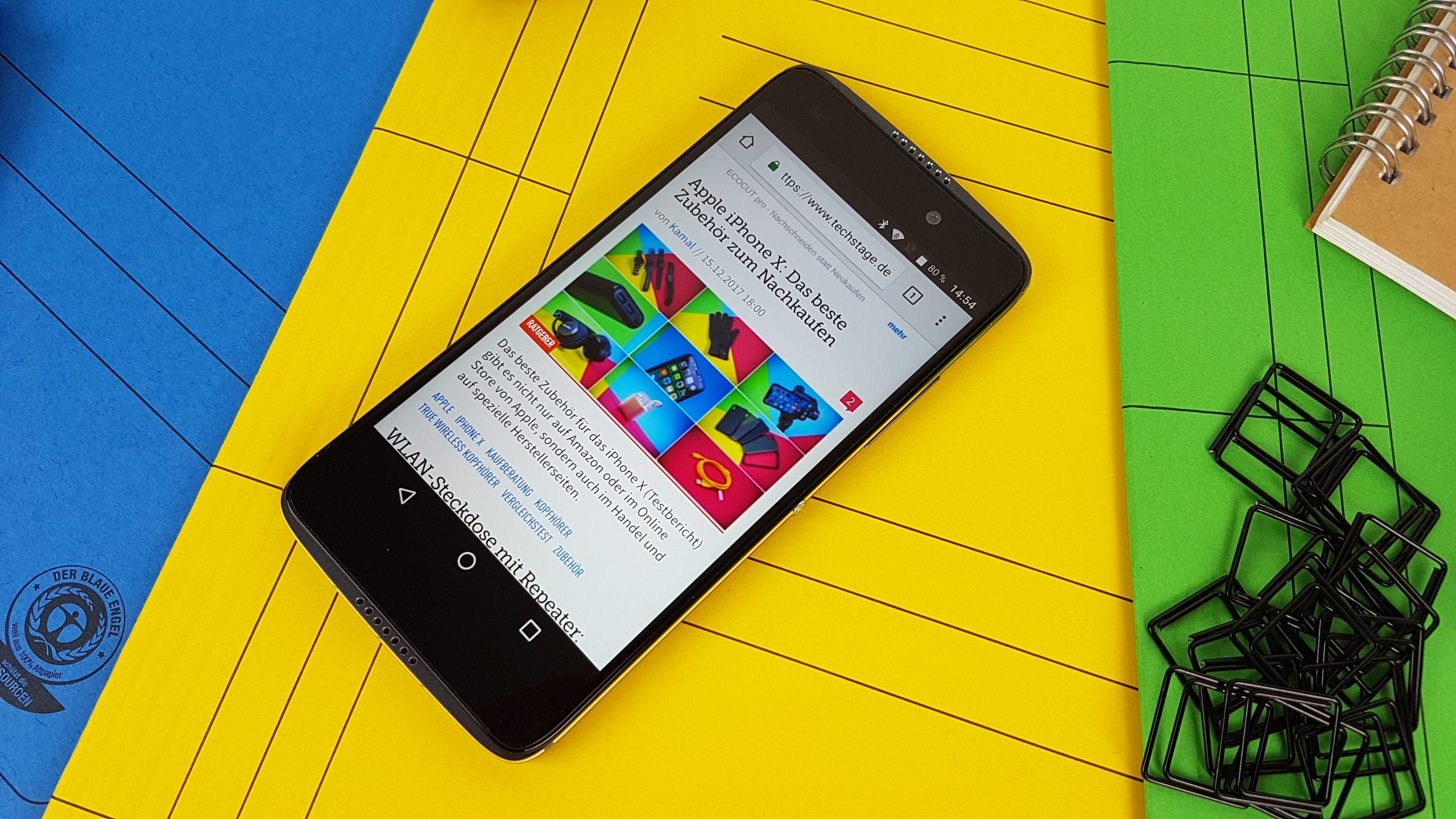 Sehr gut gefallen uns die Stereolautsprecher, die nicht nur richtig aufdrehen können, sondern für Handy-Speaker auch richtig toll klingen. Sie bieten in den oberen Frequenzen ein detailliertes und transparentes Klangbild, der Bassanteil hingegen ist vergleichsweise ordentlich und deutlich wahrnehmbarer als bei den meisten Smartphone-Lautsprechern. Das mitgelieferte JBL-Headset klingt zwar auch gut, hat uns allerdings nicht so beeindruckt wie der gute Klang der Speaker, da dies bei Smartphones selten der Fall ist.