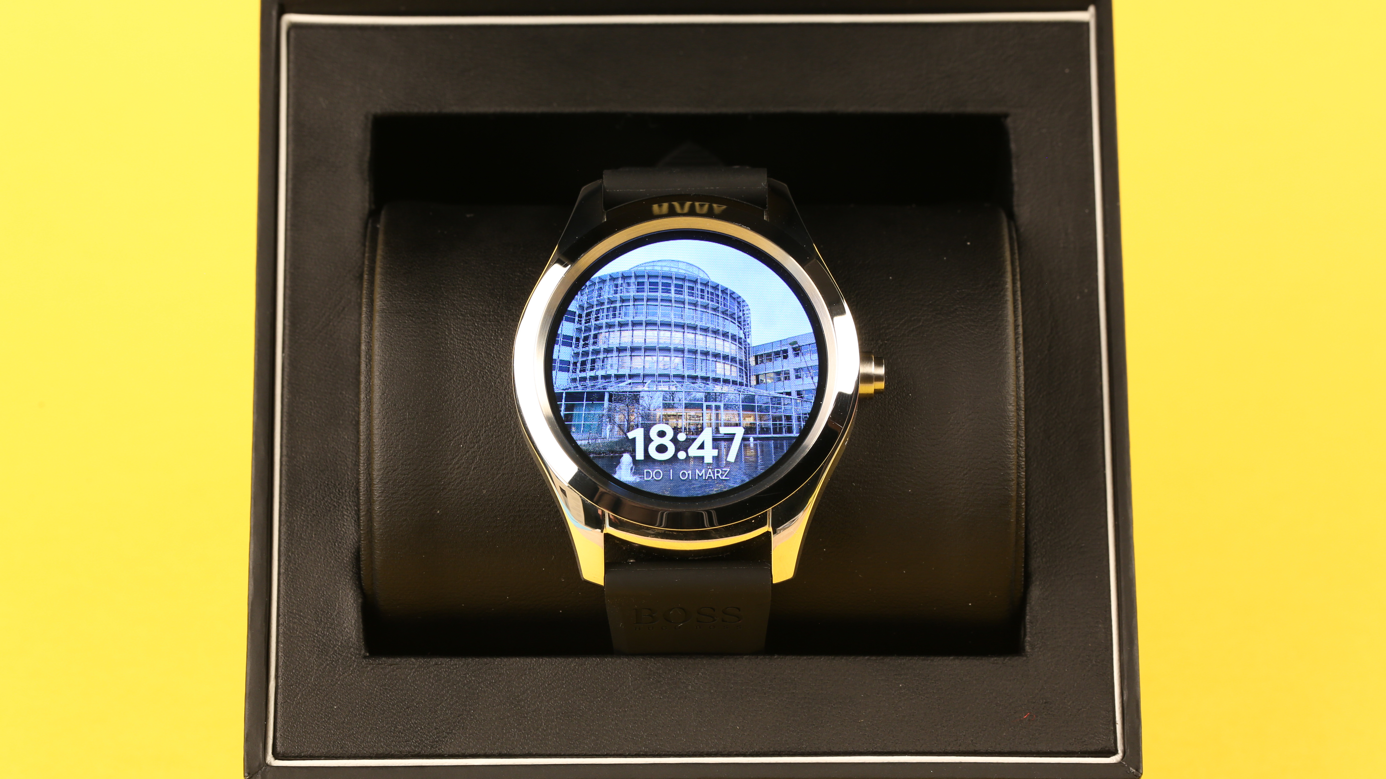 Im Vergleich zur filigranen Apple-Watch wirkt die Hugo-Boss-Uhr sehr massiv. Trägern von schweren Mode-Uhren wird das gut gefallen. Die Touch trägt sich, trotz des hohen Gewichts, sehr angenehm. Die vorinstallierten Ziffernblätter sind alle sehr schlicht gestaltet. Wer es auffälliger mag, kann jederzeit andere Skins hinzufügen und diese nach seinen persönlichen Wünschen individualisieren.