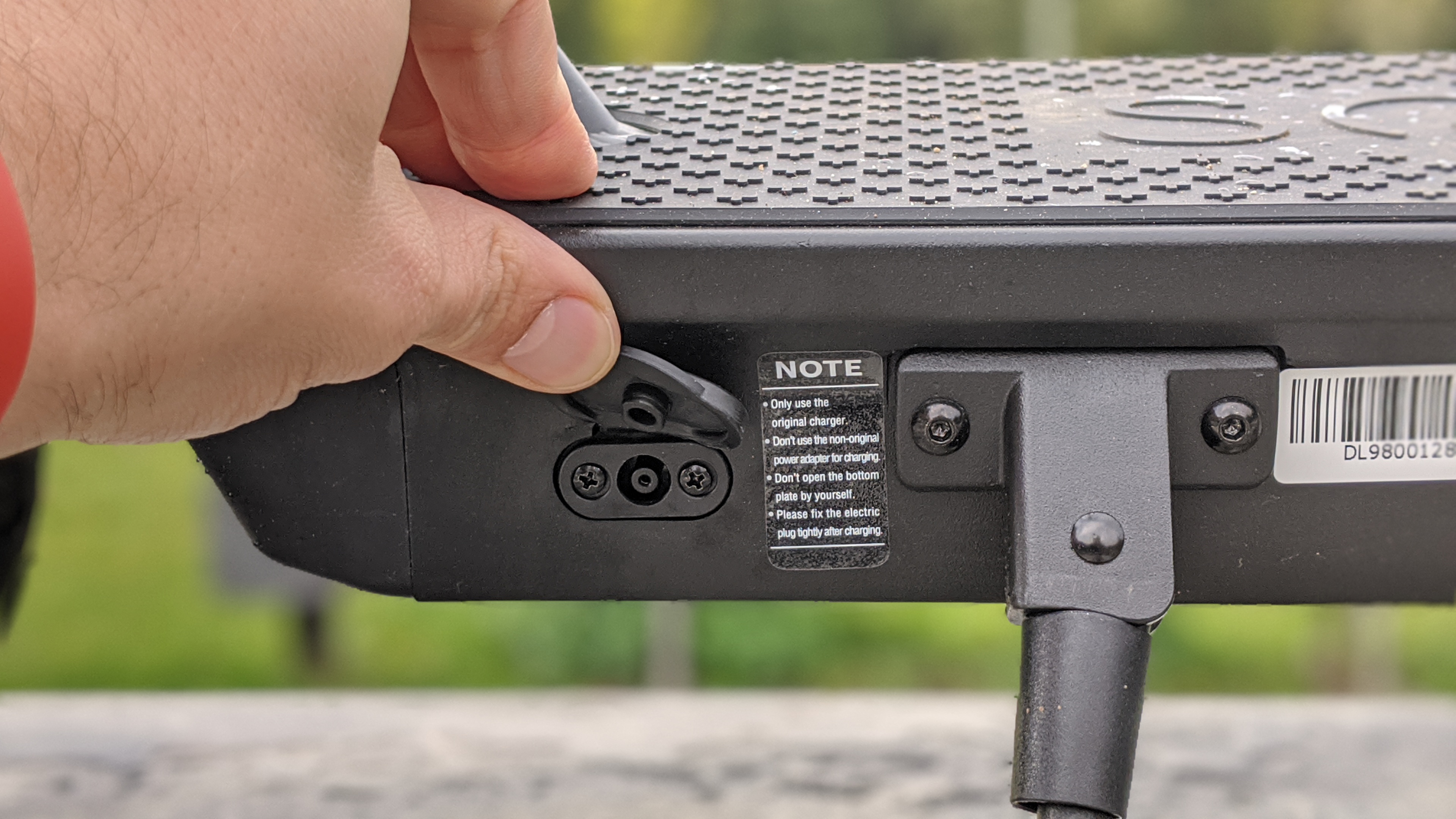 Soflow verspricht mit einer Ladung des 281-Wh-Akkus eine Reichweite von 30 km. Das mag für sehr, sehr, sehr leichte Personen stimmen. Wir kommen bei 90 kg auf gut 20 km. Die Reichweite geht in Ordnung, allerdings ist es doch schade, dass Soflow mit seiner Angabe derart übertreibt – das sind immerhin 50 Prozent. Das 84-W-Netzteil liegt dem Roller bei, der Eingang für den Rundhohlstecker befindet sich an der Seite des Soflow S06 gut geschützt unter einer Gummiabdeckung. Vollgeladen ist der Akku nach etwa 2,5 Stunden. Solfow verspricht 800 Ladezyklen.