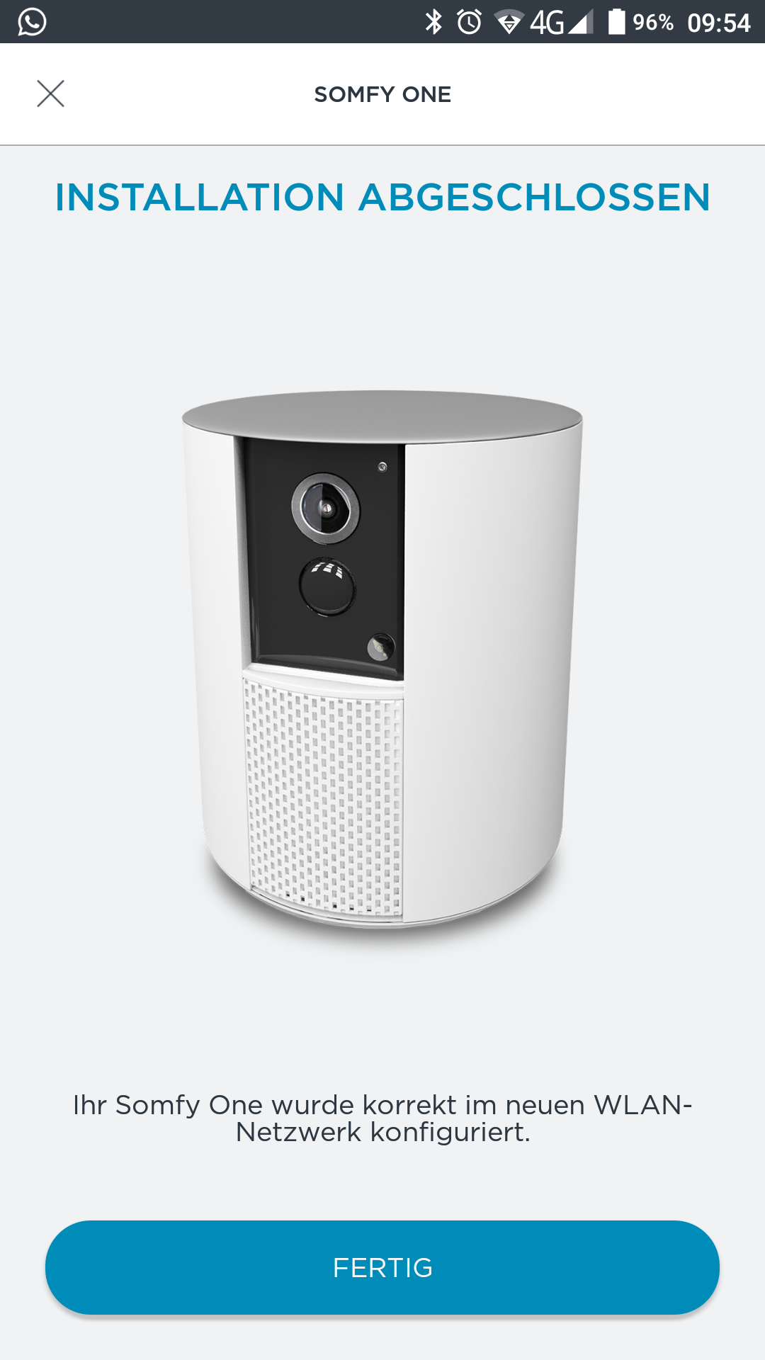 Der Hersteller nennt Somfy One/Somfy One+ eine „All-in-One-Sicherheitslösung“. Zuerst einmal handelt es sich bei dem Gerät jedoch um eine herkömmliche IP-Kamera, die – wie bei den meisten Konkurrenzprodukten auch der Fall – per Smartphone-App zuerst mit dem Router verbunden, und dann vom Handy aus konfiguriert und bedient wird.