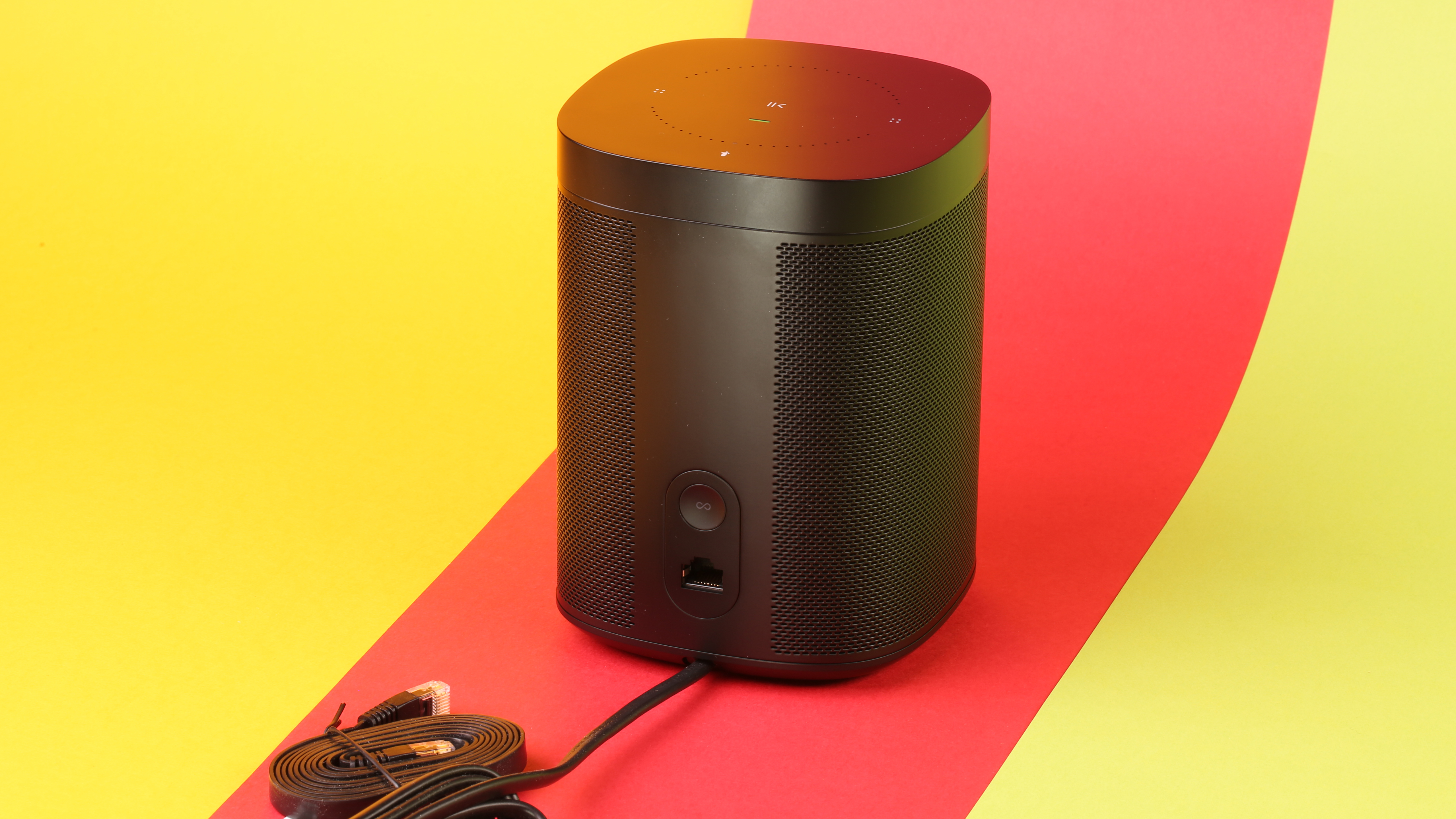 Die optische Erscheinung ist schlicht und modern: Die Kanten des 360-Grad-Speaker sind abgerundet und die glatte Oberfläche besteht aus einem einzigen großen Touchfeld. Die dortigen Tipp-Felder für Lautstärkeregelung, Titelsprung und Stummschaltung der insgesamt sechs Fernfeld-Mikrofone reagieren sehr präzise bereits auf leichte Berührungen. Auch die Status-LED sitzt auf der Oberseite, weshalb sie nicht ganz so gut zu erkennen ist, wie beispielsweise beim auffälligen LED-Ring des Echo-Plus-Speakers . Auf der Rückseite des One befinden sich die Verbindungs-Taste und der Anschluss für ein Netzwerkkabel. Das Stromkabel ist auf der Unterseite mit dem Speaker verbunden.