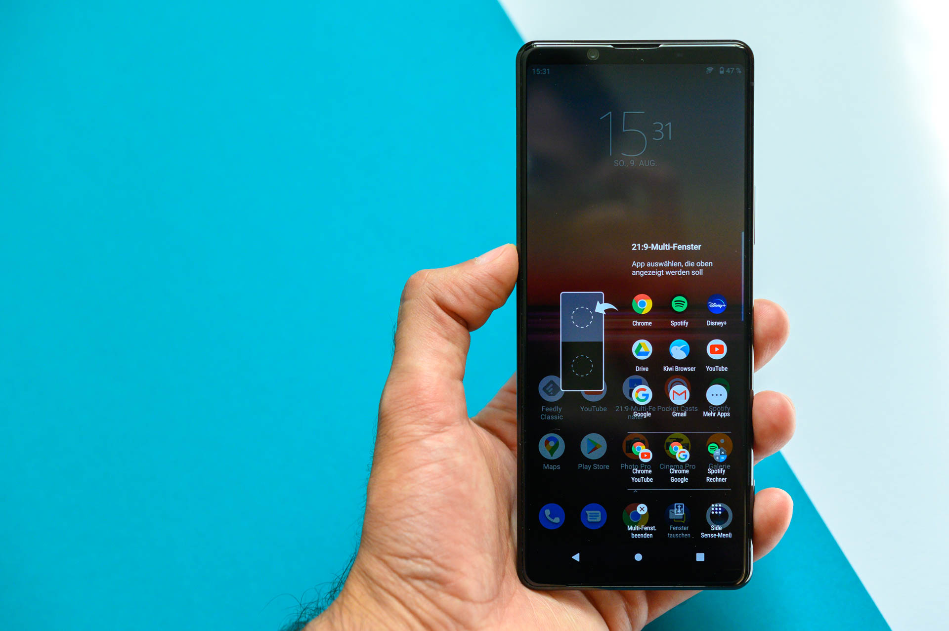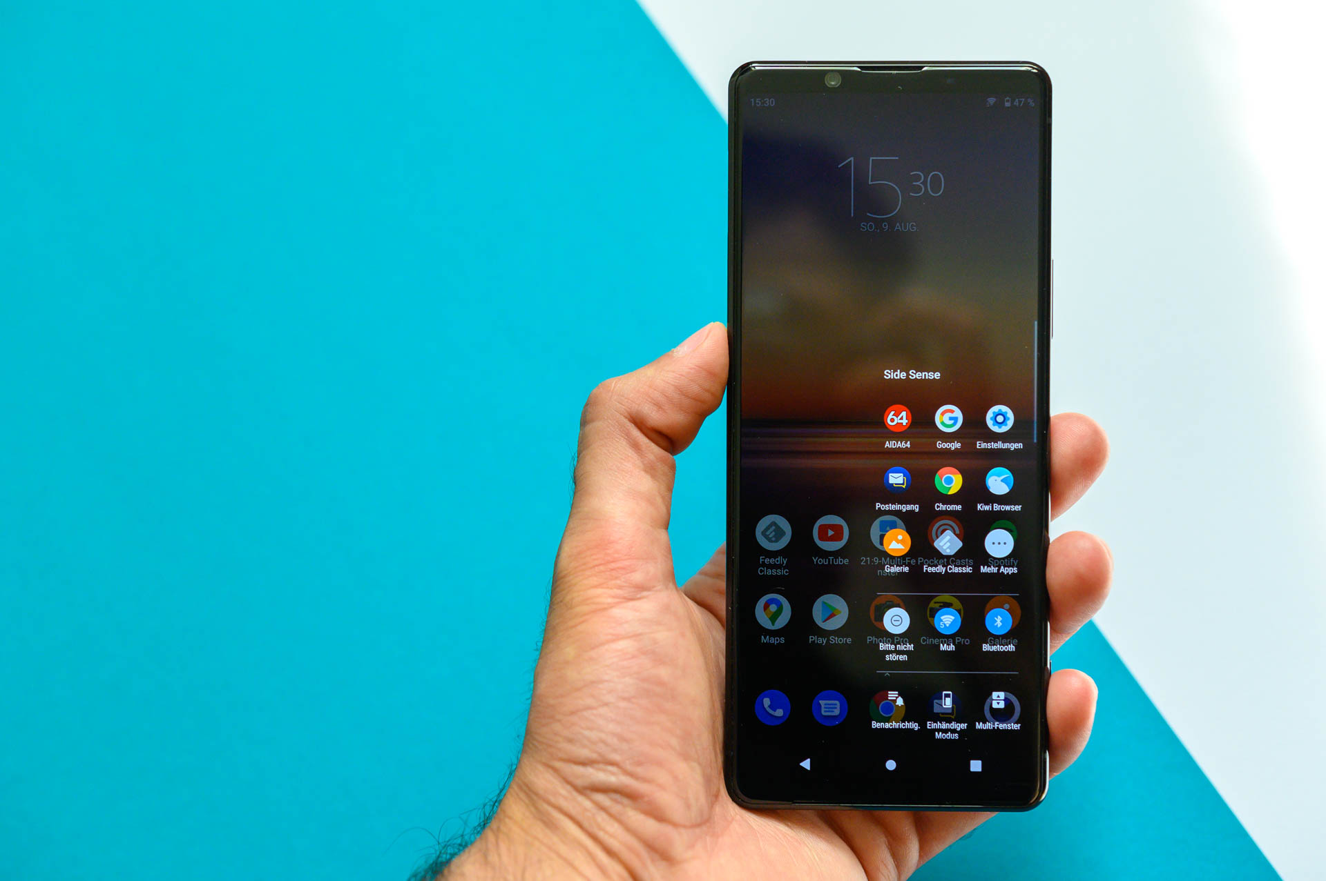 Sony leistet sich aber auch einige Schnitzer. Der gröbste wäre für den Hersteller wohl am leichtesten zu vermeiden gewesen: Das Xperia 1 II lässt sich durch seine Größe und die rutschigen Oberflächen nicht angenehm bedienen. Das Smartphone ist ständig auf der Flucht, sei es aus der Hand seines Nutzers oder der Hosentasche, dem Bett, der Couch. Der Einsatz einer Hülle ist Pflicht. Die schiere Größe macht eine Einhandbedienung des Xperia 1 II trotz des darauf ausgelegten länglichen Formats darüber hinaus schwierig – in dieser Hinsicht hat uns das kleinere Mittelklasse-Modell Xperia 10 II (Testbericht) besser gefallen. Die eingestreuten Software-Lösungen, die eine Nutzung mit nur einer Hand erleichtern sollen, haben uns beim Topmodell nicht überzeugt.