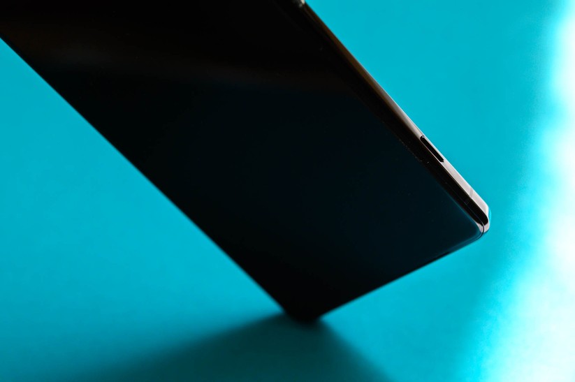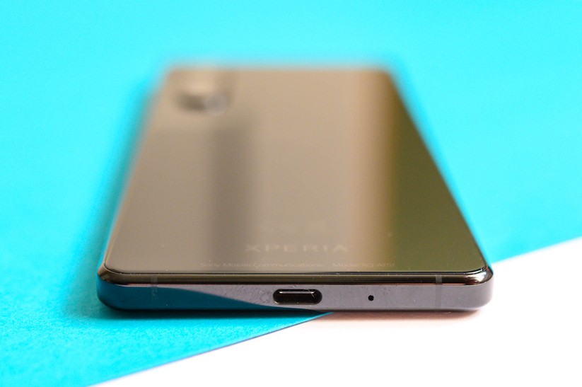 Vorder- und Rückseite des Xperia 1 II bestehen aus Gorilla Glas 6, der bei unserem Testexemplar schwarz lackierte Rahmen ist aus Aluminium gefertigt. Darin eingefasst sind ein USB-C-Anschluss und ein mit dem Fingernagel leicht herausziehbares SIM- und Speicherkartenfach. Audiophile Nutzer dürfen sich zudem über einen 3,5-mm-Klinkenanschluss freuen. Rechts befinden sich die Lautstärkewippe, die Power-Taste mit integriertem Fingerabdrucksensor und ein physischer Kamera-Auslöser. Das Sony-Smartphone ist gemäß der IP65- und IP68-Richtlinien wasser- und staubdicht. Die Verarbeitung macht insgesamt einen hervorragenden Eindruck. Mit einem Gewicht von 181 Gramm ist das Xperia 1 II zwar nicht überdurchschnittlich schwer, durch das lange Format aber recht kopflastig. Die Dreifachkamera hinten nimmt ein Drittel der Länge ein und ragt gute zwei Millimeter aus der Glasrückseite heraus.