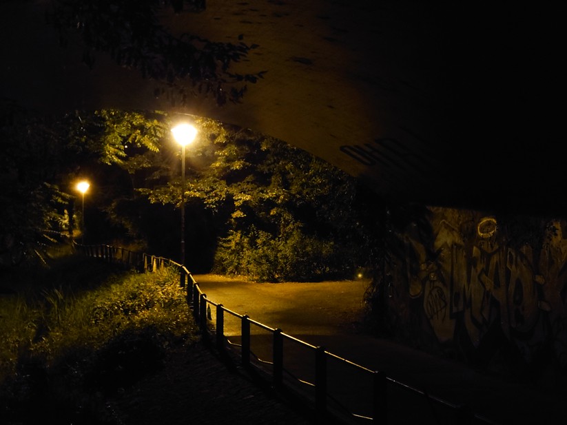 Zwar schlägt sich die Kamera des Xperia 1 II auch bei schwindendem Licht ganz gut. Bei Nachtaufnahmen muss sie sich dann aber doch gegen die von Google, Huawei und Samsung geschlagen geben. Einen ausgewiesenen Nachtmodus hat das Sony-Smartphone nicht, die automatische Szenenerkennung schaltet automatisch in einen entsprechenden Aufnahmemodus. Wie bei anderen Herstellern werden damit über wenige Sekunden mehrere Bilder geschossen, die dann zu einem verrechnet werden. Das ist auch ohne Stativ möglich, das Smartphone sollte dennoch ruhig gehalten werden. Leider werden die daraus entstehenden aufgehellten Nachtaufnahmen nur von der 24-Millimeter-Hauptkamera angefertigt, mit den Tele- und Ultraweitwinkelkameras bleiben die Fotos sehr dunkel. Außerdem gerät der bei Tageslicht und in Innenräumen sehr effiziente 3D-iToF-Fokus bei Dunkelheit ohne größere Lichtquellen an seine Grenzen und kann die Szene nicht scharf stellen.