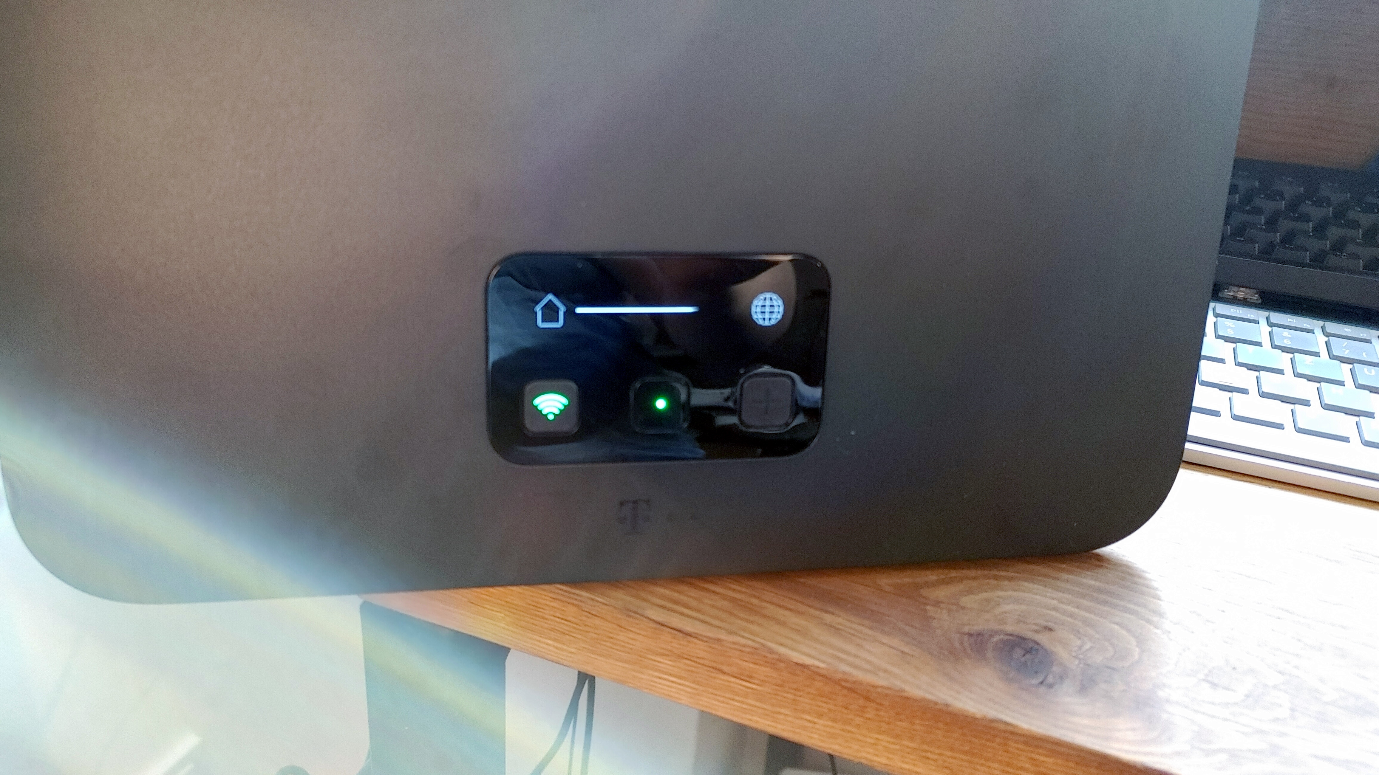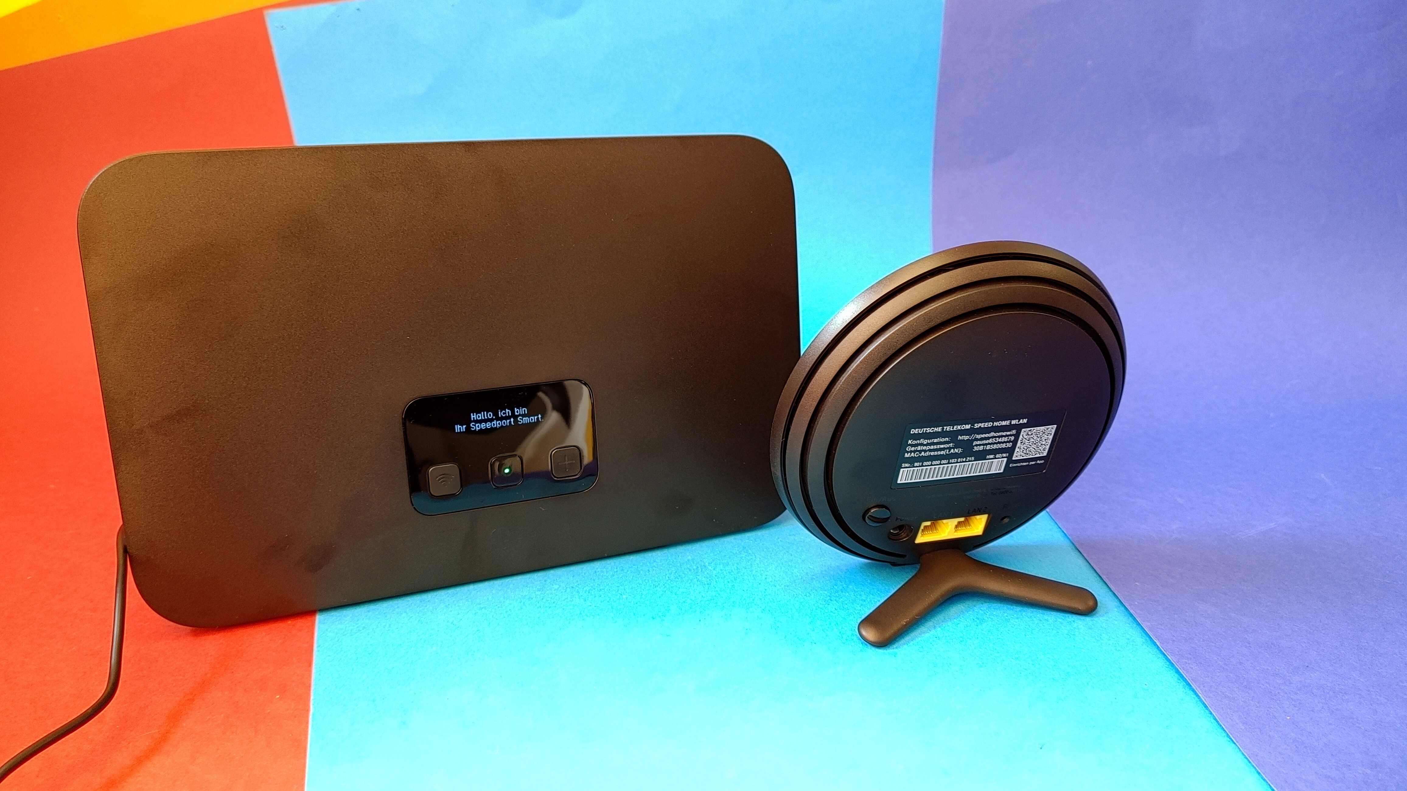 Die Mesh-Satelliten Telekom Smart Home verbinden sich über WPS mit dem Speedport Smart 4. Dazu steckt man beide Geräte an den Strom, wartet, bis die Boot-Sequenz abgeschlossen ist und drückt anschließend die große Plus-Taste an der Front. Zunächst am Router (der den Status über ein LCD anzeigt), anschließend am Satelliten. Nach etwa 10 Minuten ist die Konfiguration überspielt und der Satellit Teil des WLAN-Netzwerks. Einfach und effektiv, im Test hatten wir damit keine Probleme.