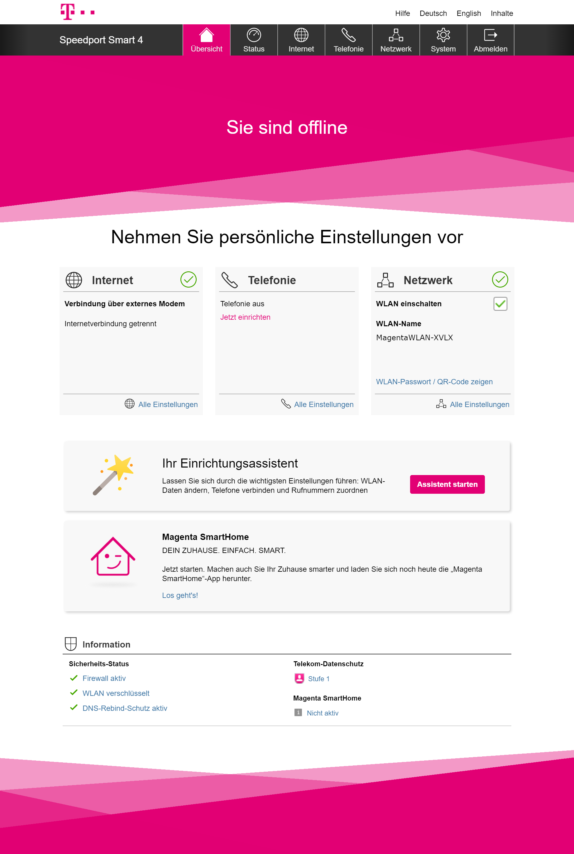 Klar, in erster Linie richtet sich das System an Telekom-Kunden. Die bekommen damit eine Rundum-Betreuung und können Dienste wie Magenta TV oder die Telefonfunktion ohne große Probleme verwenden; die Oberfläche ist schlicht für sie optimiert. Doch auch wer bei einem anderen DSL-Anbieter ist, kann das System sinnvoll nutzen, allerdings muss man wahrscheinlich die jeweiligen Einstellungen herausfinden und anpassen. Einzig, wer eine andere Technik nutzt, etwa Kabel oder Glasfaser, dem raten wir zu einem anderen System. Offenbar hat der Speedport Smart 4 ein paar Probleme, wenn er hinter anderen Modems sitzt.