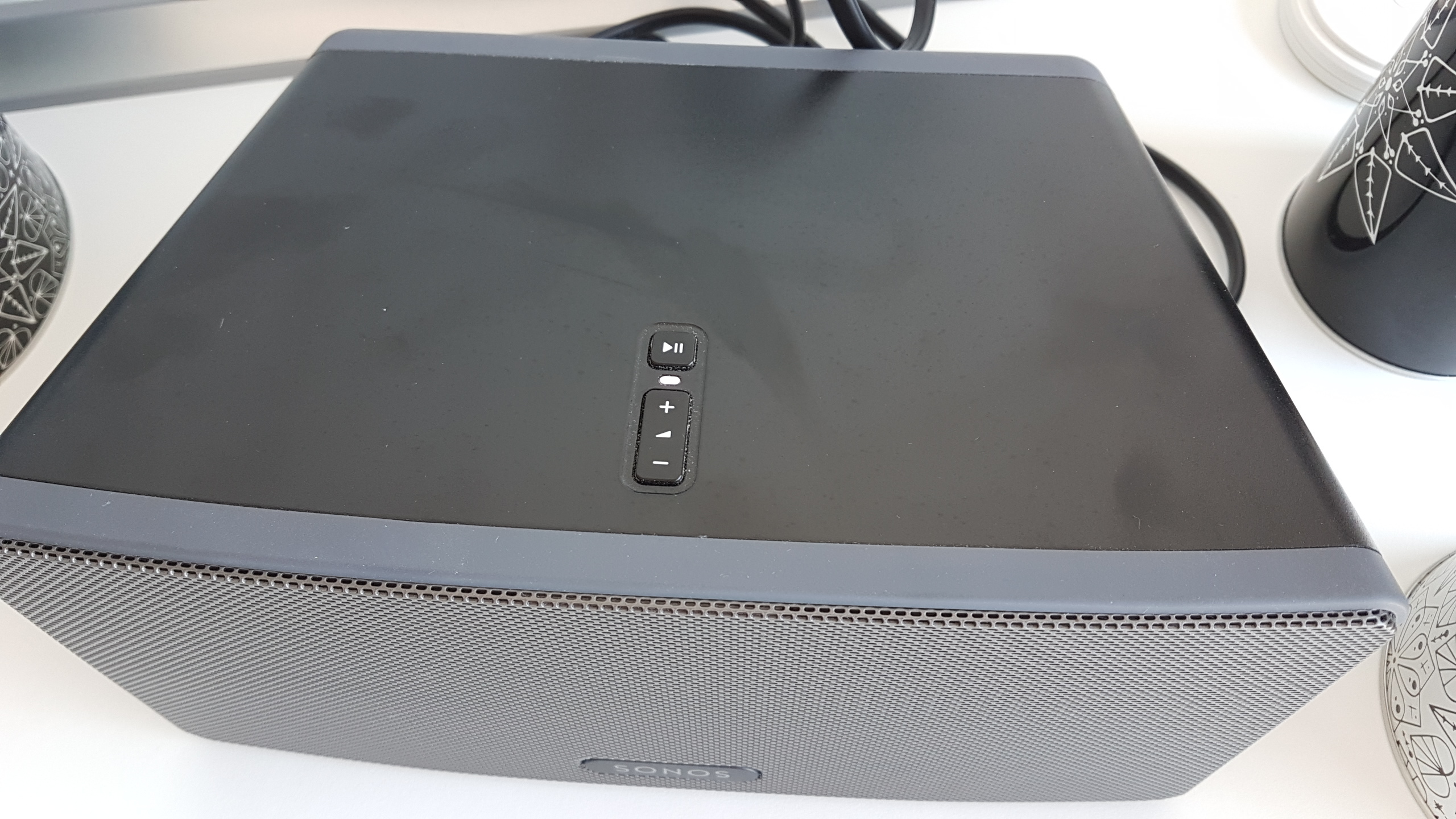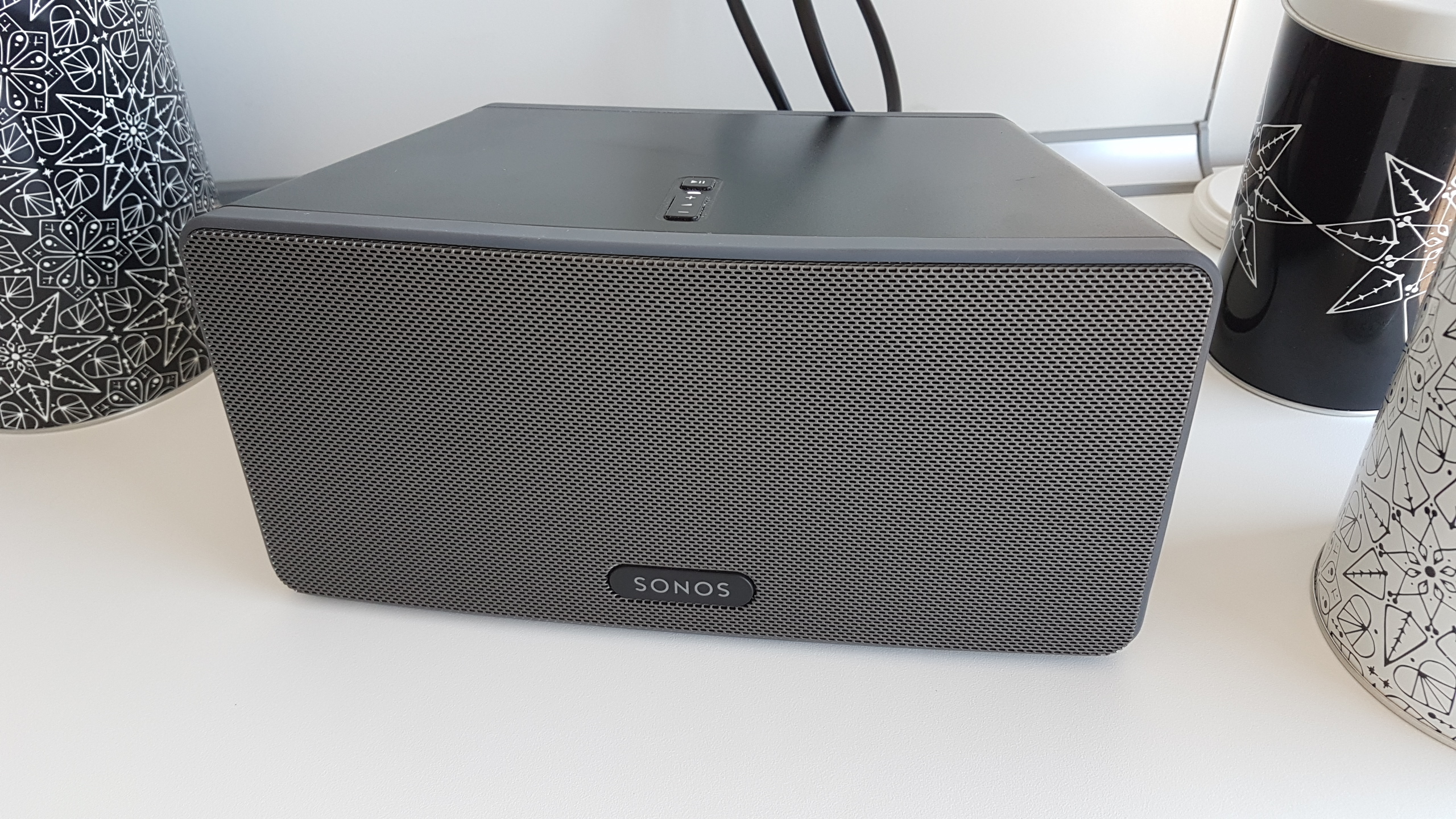 Der Play:3 hat an Technik drei digitale Class-D-Verstärker, zwei Mitteltöner, einen Hochtöner und einen passiven Bass. Wie üblich verrät Sonos keine genaueren Spezifikationen, der Klang des Gerätes spricht allerdings auch für sich, aber dazu später mehr.