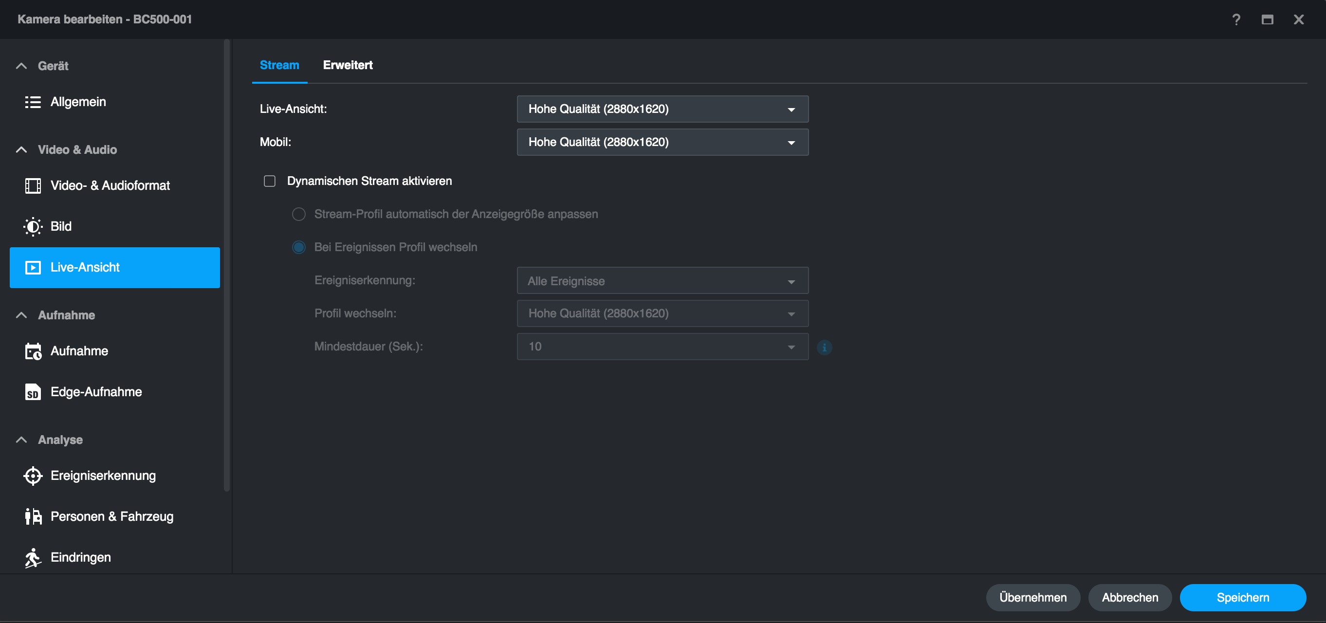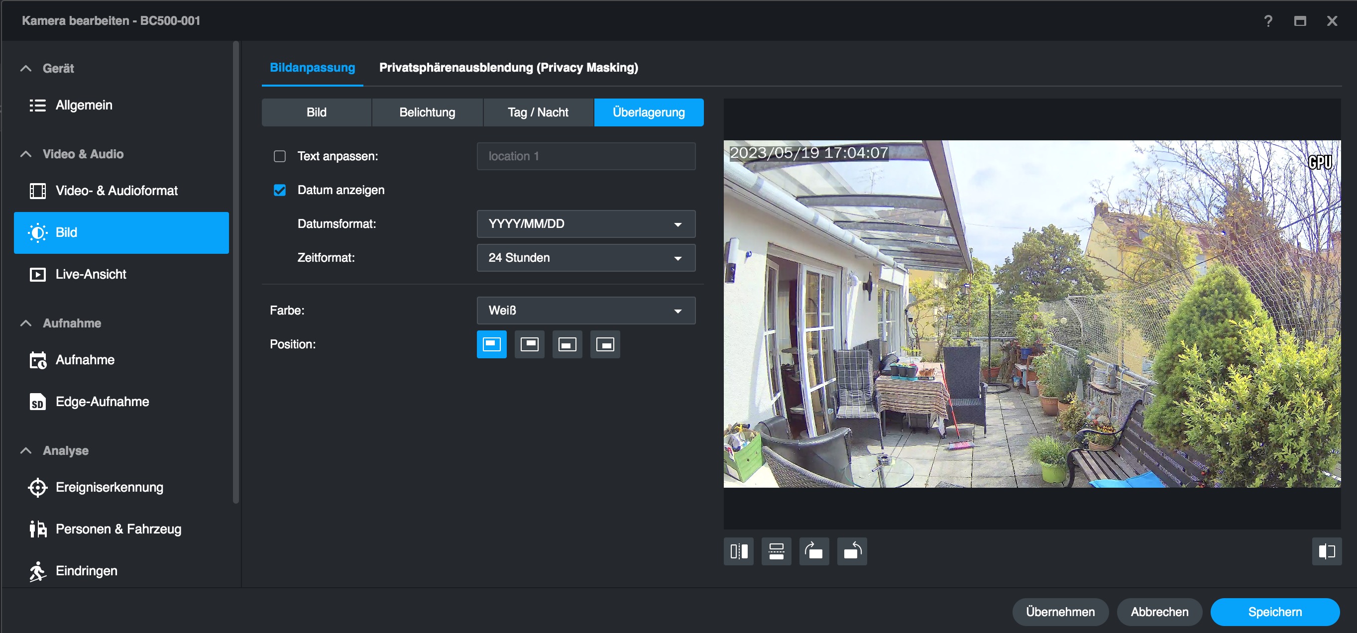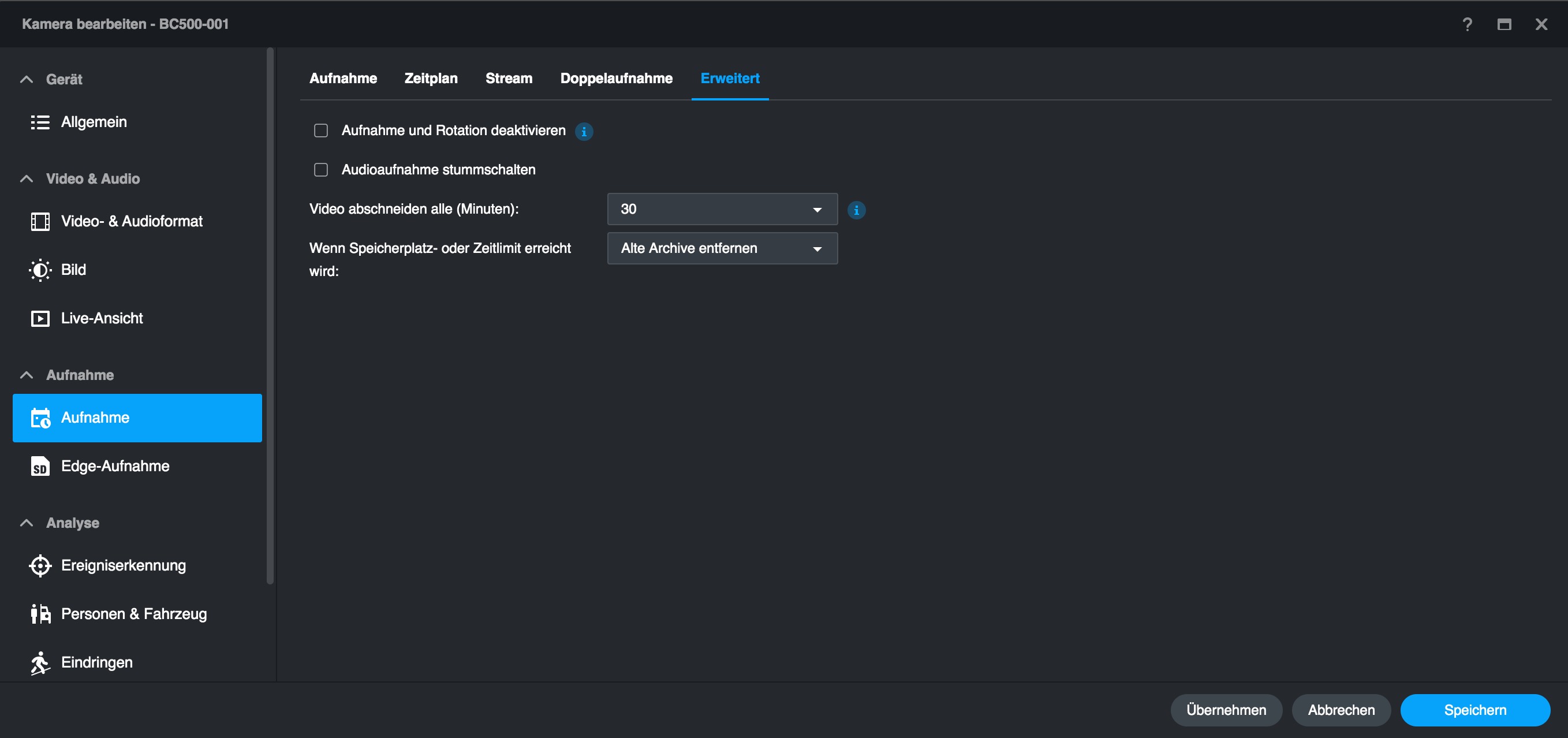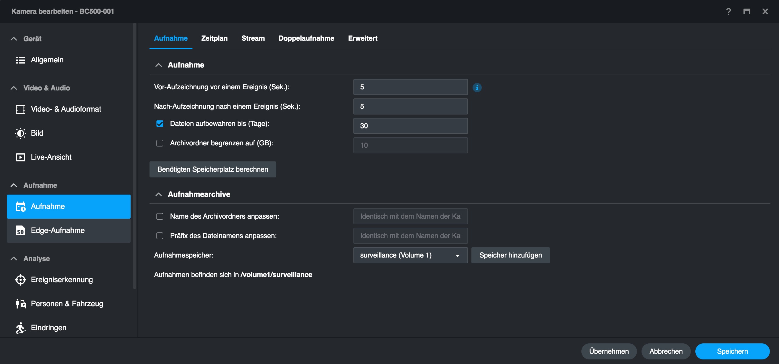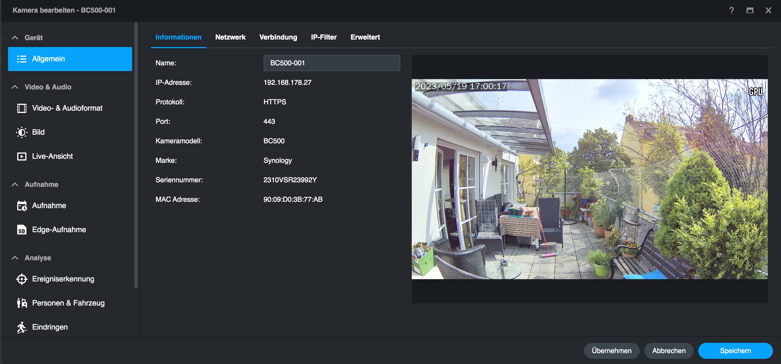 Im Vergleich zu anderen, mit einer Synology Surveillance Station verbundenen Überwachungskameras bietet die BC500 mehr Optionen, die man bereits mit der Surveillance Station einstellen kann. Dazu zählen etwa Bildparameter und smarte Erkennungsfunktionen, die etwa mit einer Hikvision-Kamera nur über deren Web-Interface zugänglich sind. Das erleichtert die Verwaltung der BC500 erheblich, da man nicht mehr zwischen Surveillance Station und Webinterface hin- und herwechseln muss – auch nicht für ein Firmware-Update.