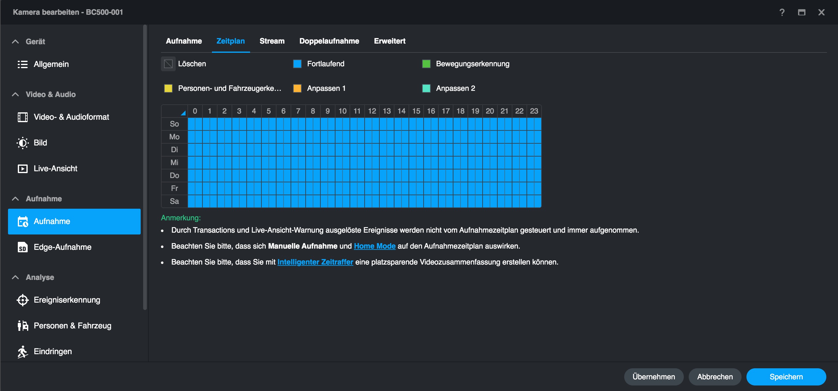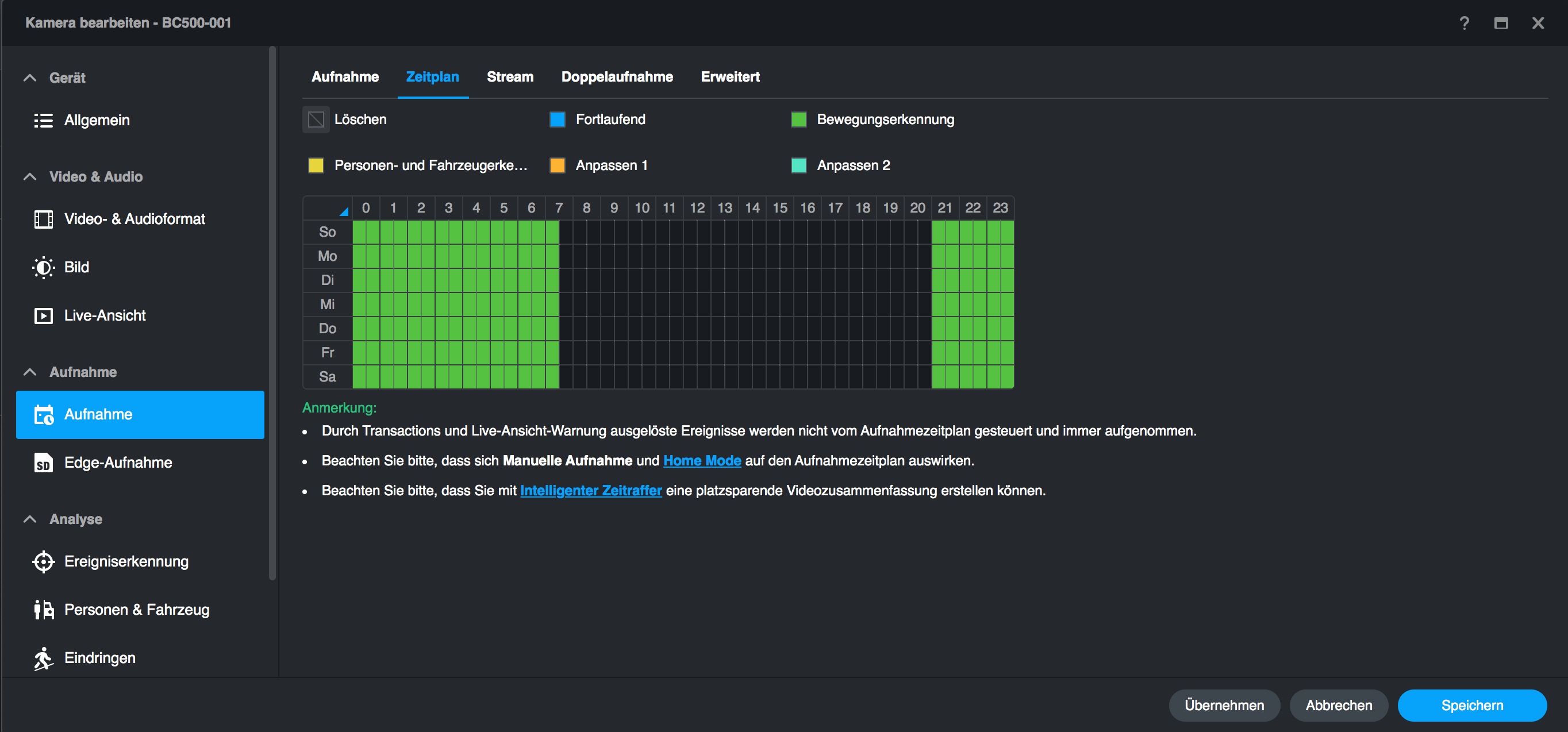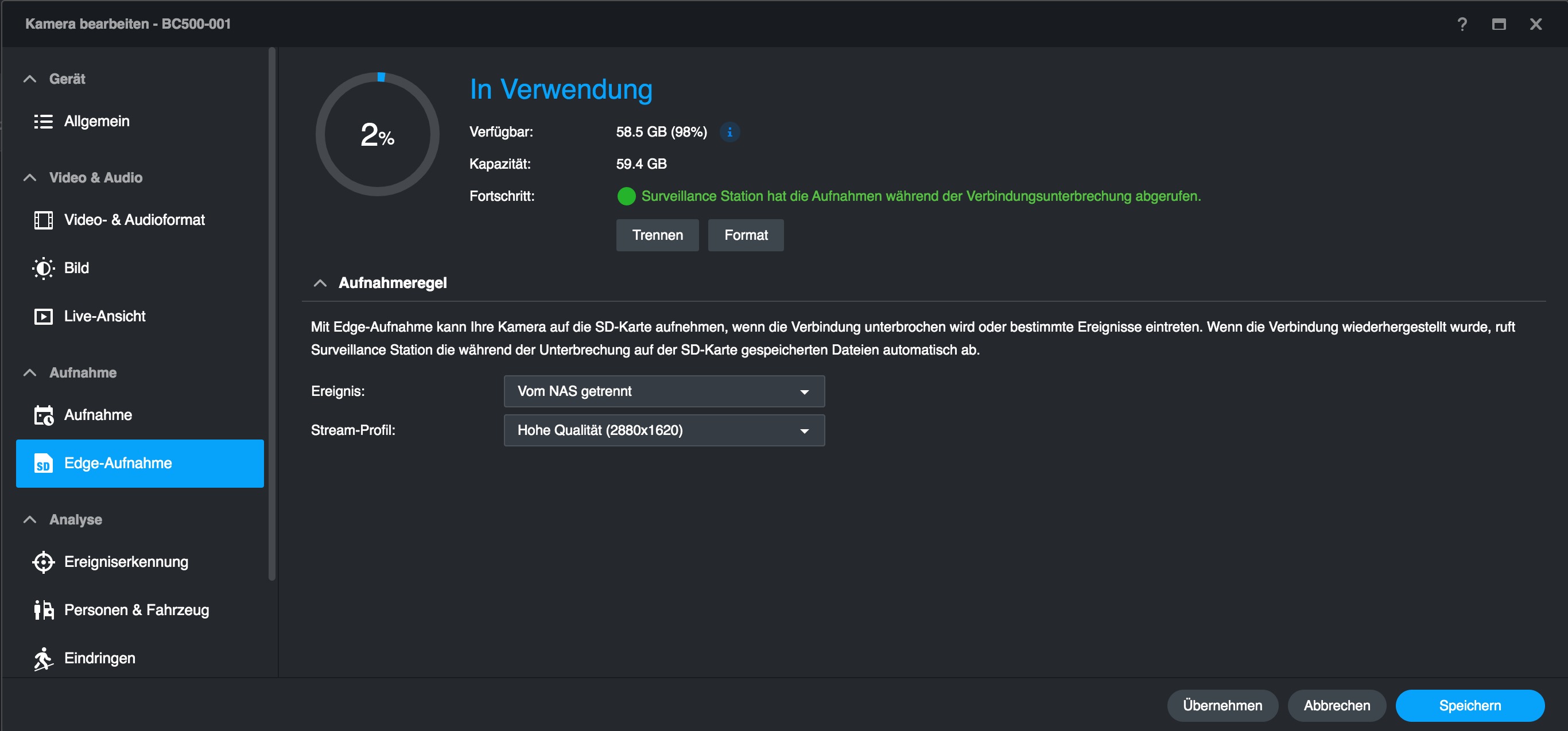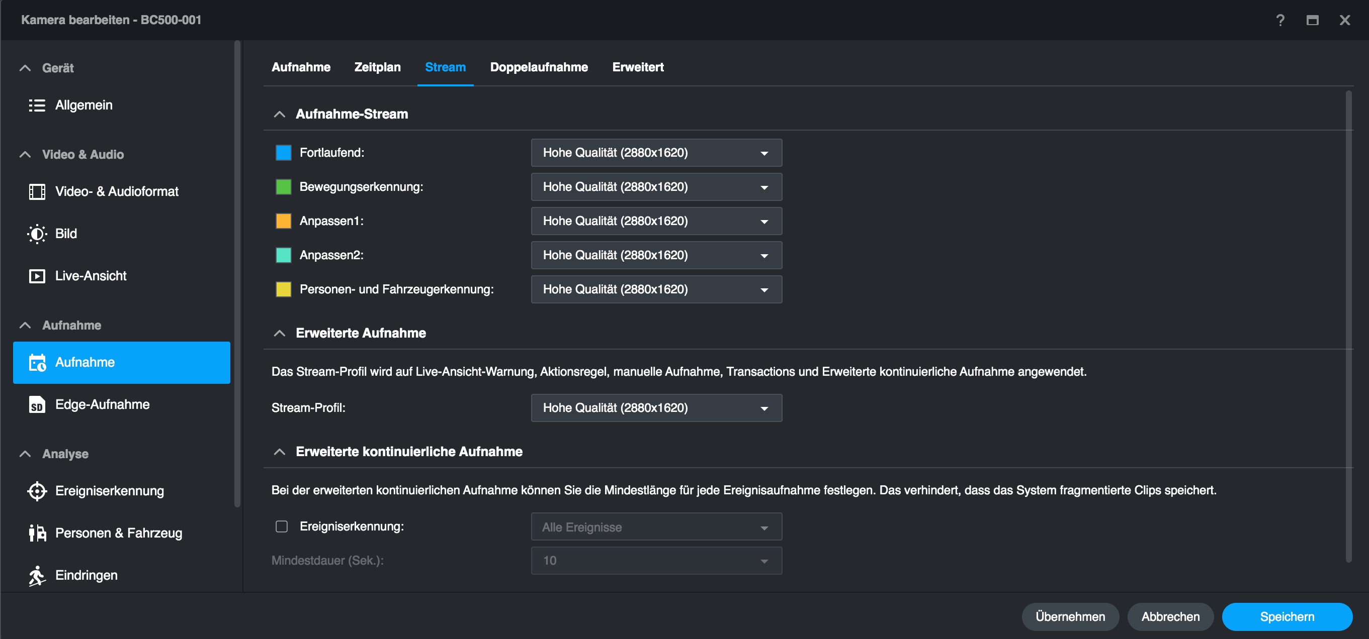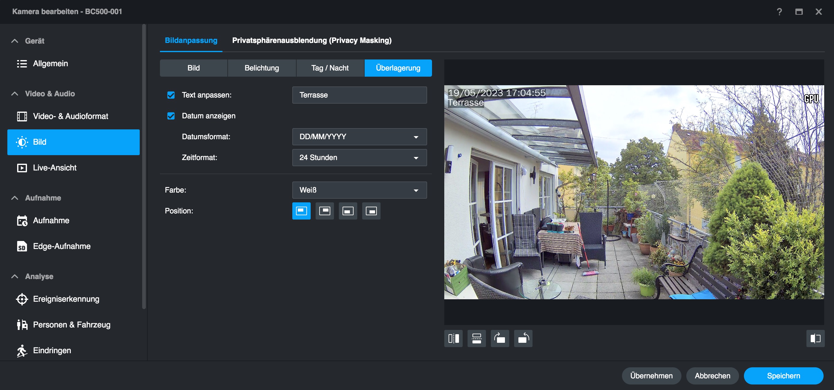 Im Vergleich zu anderen, mit einer Synology Surveillance Station verbundenen Überwachungskameras bietet die BC500 mehr Optionen, die man bereits mit der Surveillance Station einstellen kann. Dazu zählen etwa Bildparameter und smarte Erkennungsfunktionen, die etwa mit einer Hikvision-Kamera nur über deren Web-Interface zugänglich sind. Das erleichtert die Verwaltung der BC500 erheblich, da man nicht mehr zwischen Surveillance Station und Webinterface hin- und herwechseln muss – auch nicht für ein Firmware-Update.