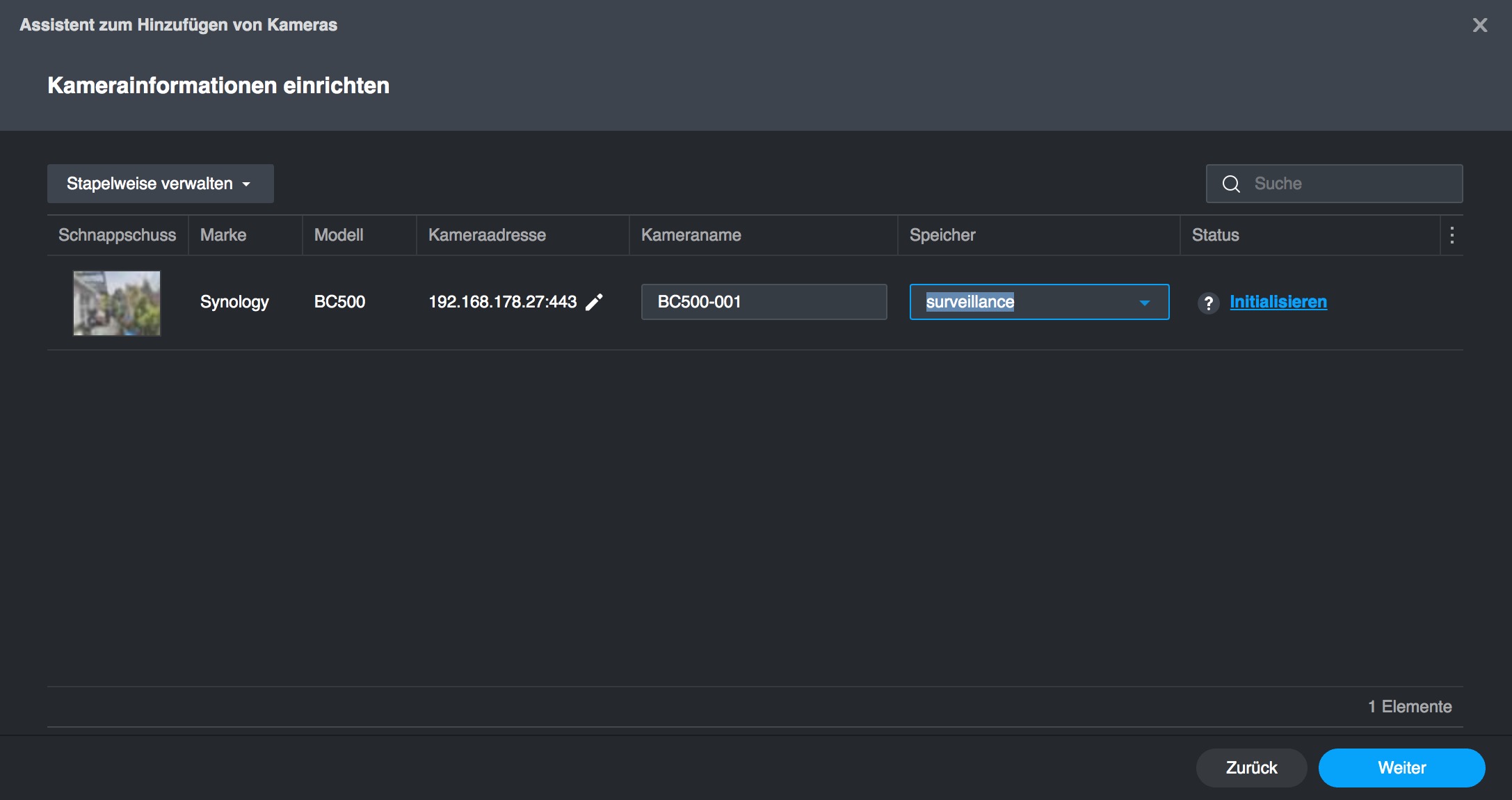 Die Inbetriebnahme erfordert den Einsatz einer Synology-NAS über die darin integrierte Anwendung Surveillance Station. Zwar kann man auch per RTSP auf Livestream zugreifen und darüber Aufnahmen starten, doch das ist eher eine Notlösung, die in der Praxis kaum eine Rolle spielt, da die wesentlichen Funktionen nur mit der Surveillance Station zur Verfügung stehen.