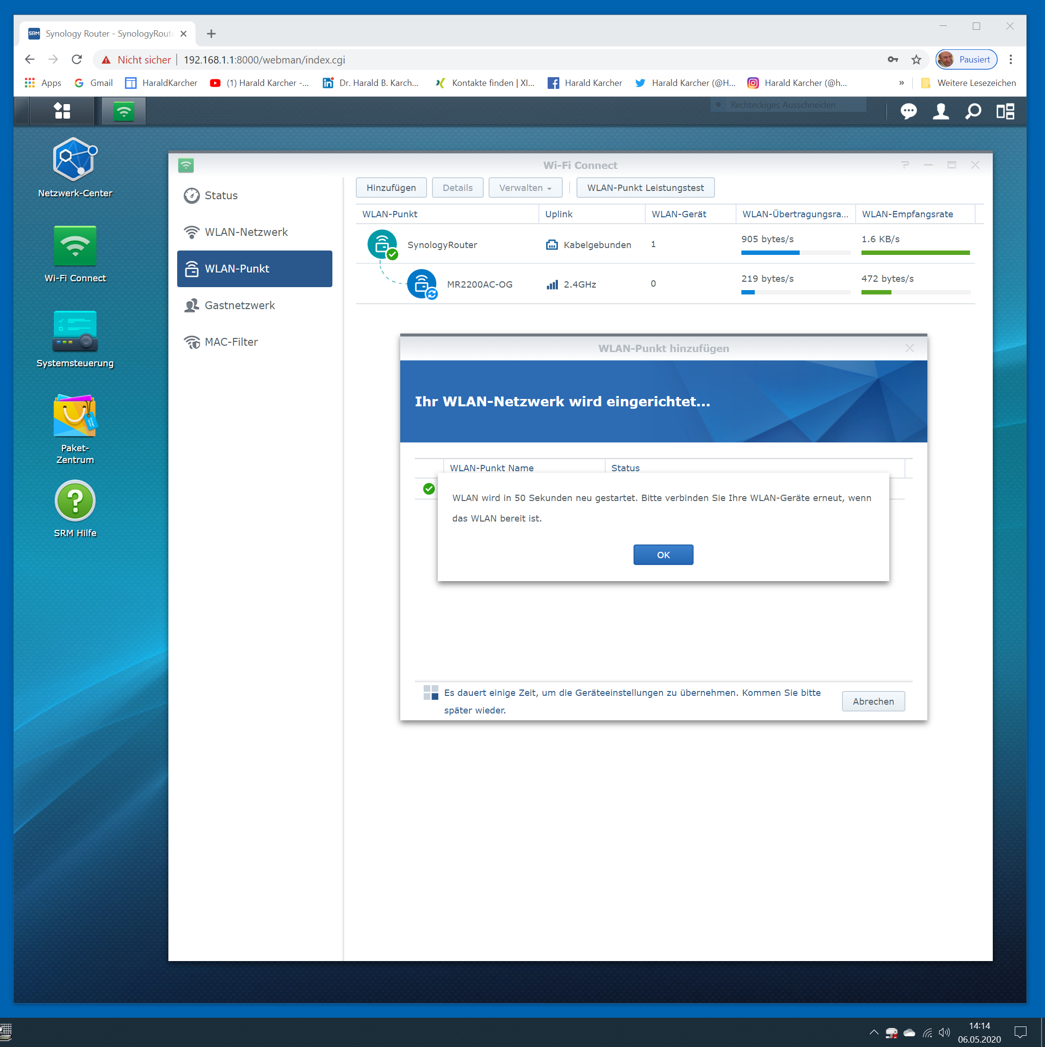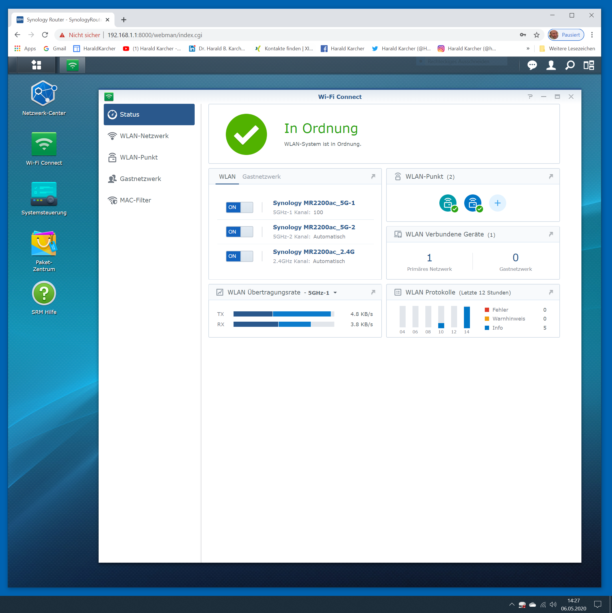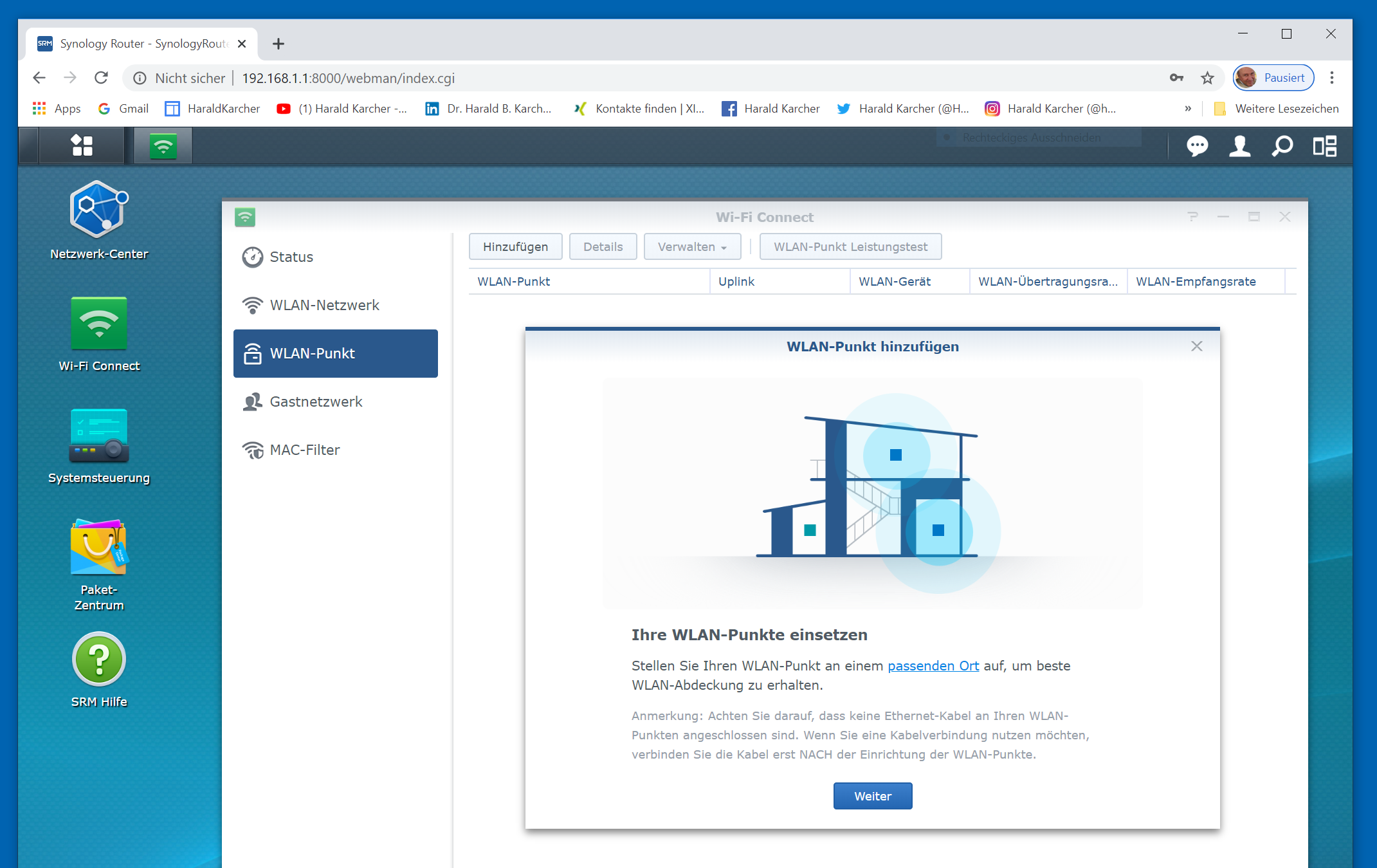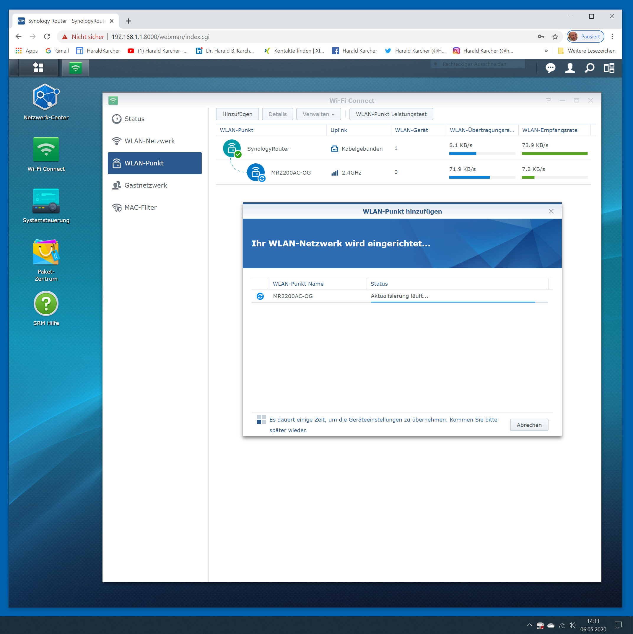 Die folgende Bilderstrecke zeigt die Einrichtung des ersten Synology MR2200ac, bevor er mit dem zweiten MR2200ac Router per Funk gekoppelt wurde. Die Bilderstrecke zeigt die Features im Detail: