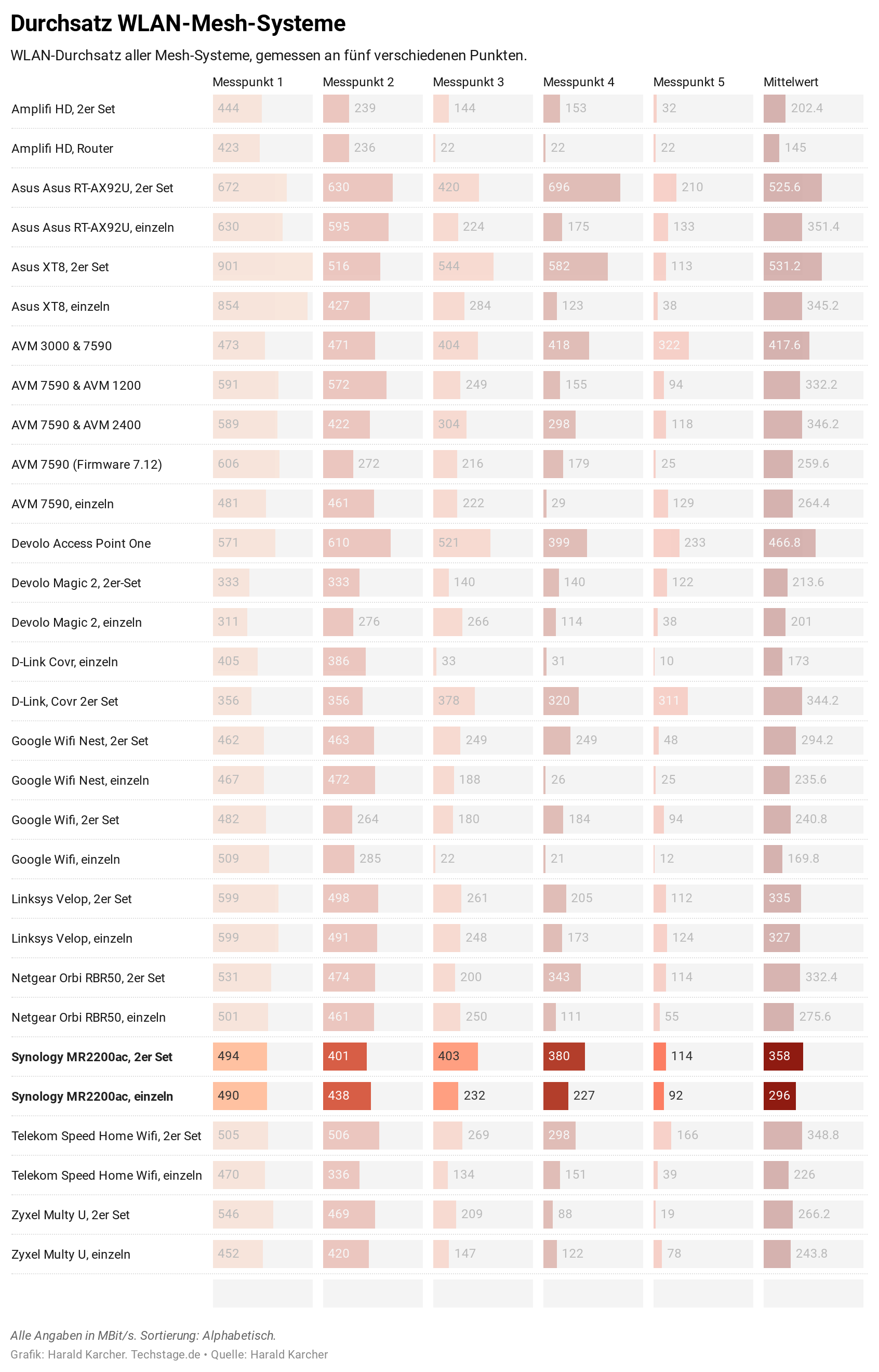 Die Übersicht zeigt gut, dass der MR220ac mit einem weiteren Gerät vor allem an den schwierigen Messpunkten 4 und 5 punkten kann. Und das für einen vergleichsweise niedrigen Kostenaufwand.