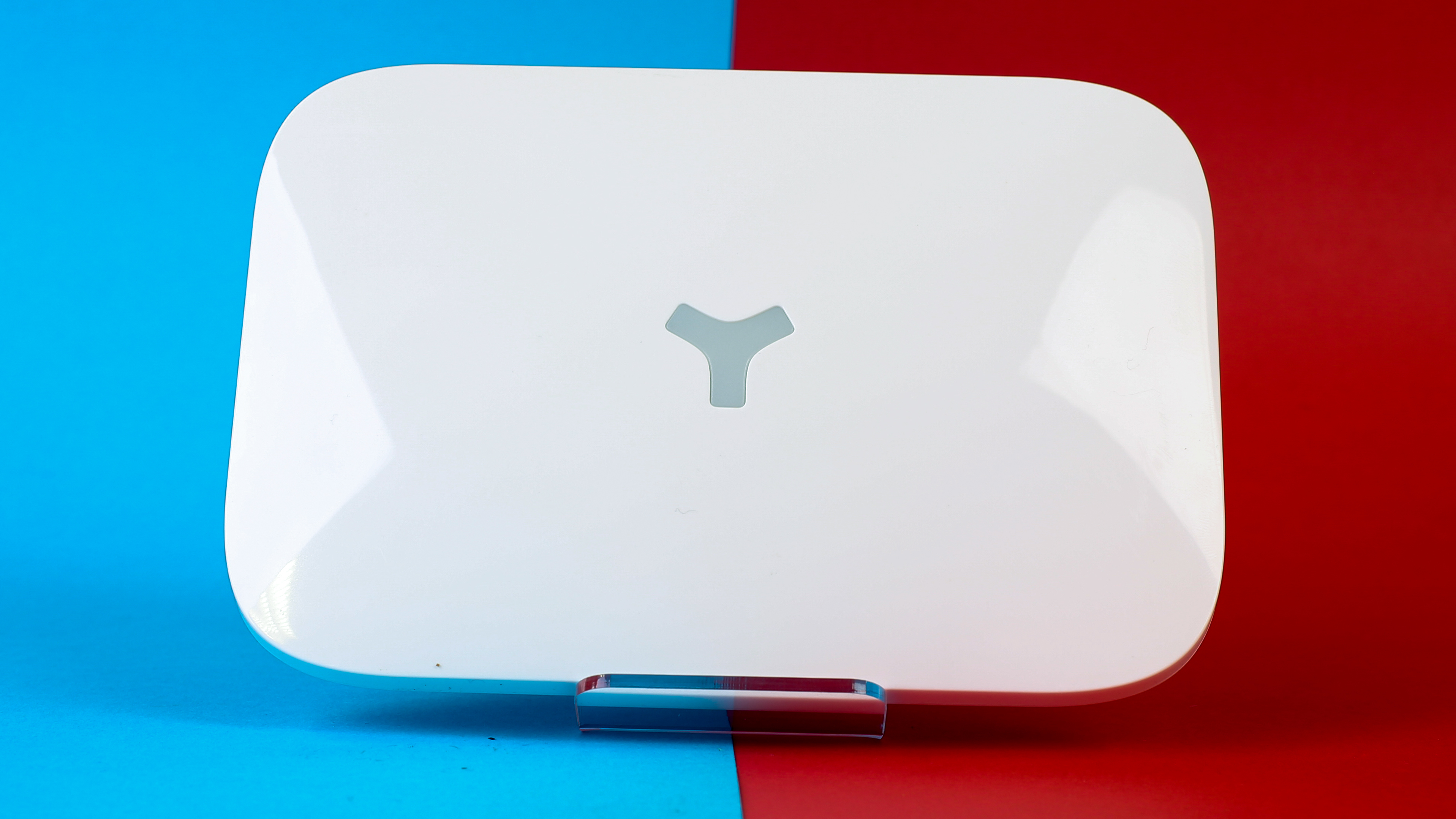 Die Komponenten sehen ansprechend aus und sind hochwertig verarbeitet. Die Alarmzentrale besteht aus einem glänzend-weißen Gehäuse, das Hersteller-Logo leuchtet in verschiedenen Farben und gibt so Feedback. Eine kleine Sirene und ein Puffer-Akku für den Weiterbetrieb bei Stromausfall sind integriert.