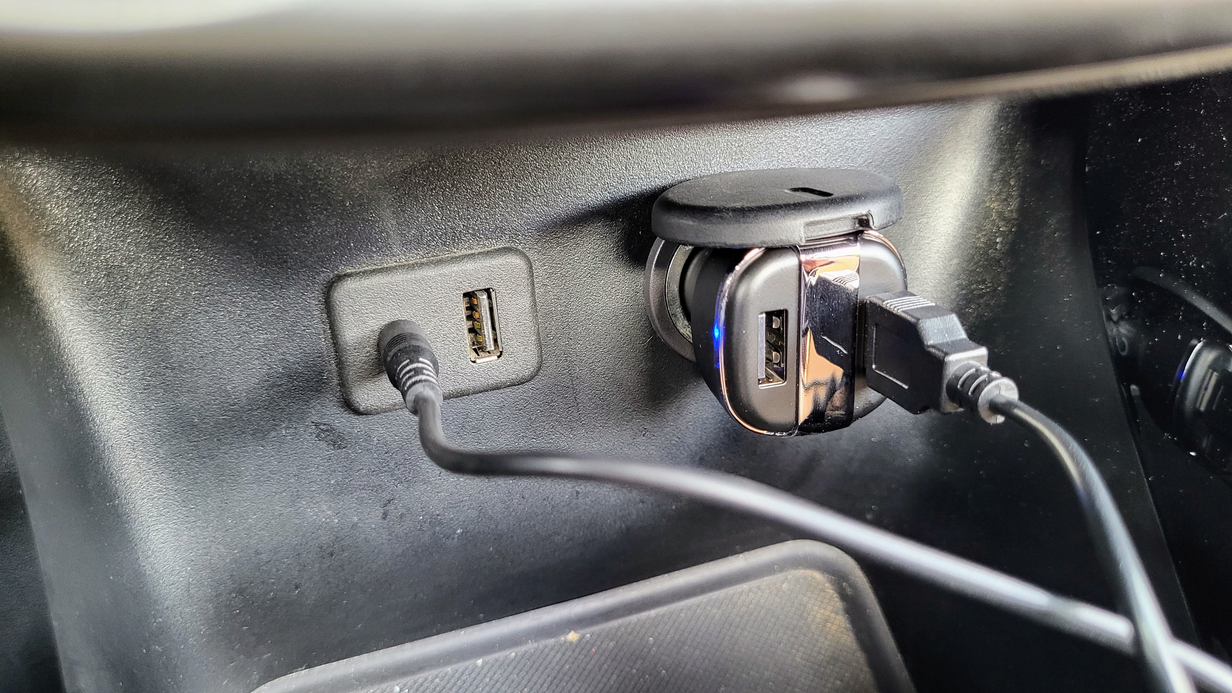 Das Netzkabel verbindet man mit der Micro-USB-Buchse am Gerät sowie dem USB-A-Anschluss am 12-Volt-Netzteil (im Zigarettenanzünder). Dort befindet sich ein weiterer USB-A-Anschluss, falls man auch das Smartphone laden möchte. Praktisch und selten zugleich: Der Adapter bietet einen eigenen Akku, der bis zu fünf Stunden durchhält. Somit muss bei kürzeren Steckern das Gerät nicht zwingend immer eingestöpselt werden.