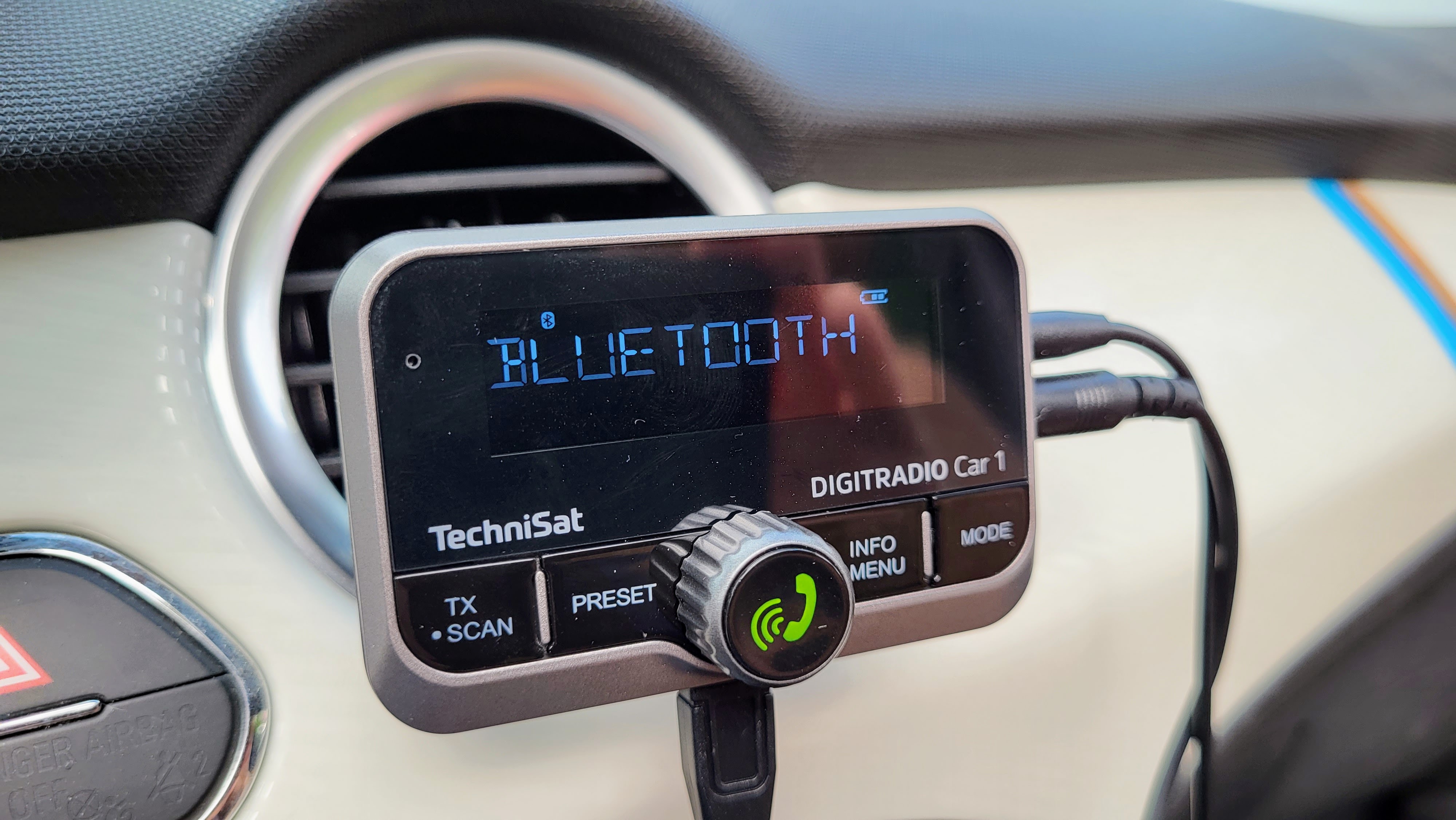 Wer preiswert im Auto DAB+ nachrüsten will, findet mit dem Technisat Digitradio Car 1 einen günstigen Adapter für Digitalradio. Die Verbindung mit dem Autoradio erfolgt per AUX-Kabel oder FM-Transmitter, zusätzlich dient das Gerät auch als Bluetooth-Adapter fürs Smartphone – was praktisch ist, wenn das Autoradio nicht über diese Technologie verfügt. Das macht das Gerät von Technisat auch zur Freisprecheinrichtung.