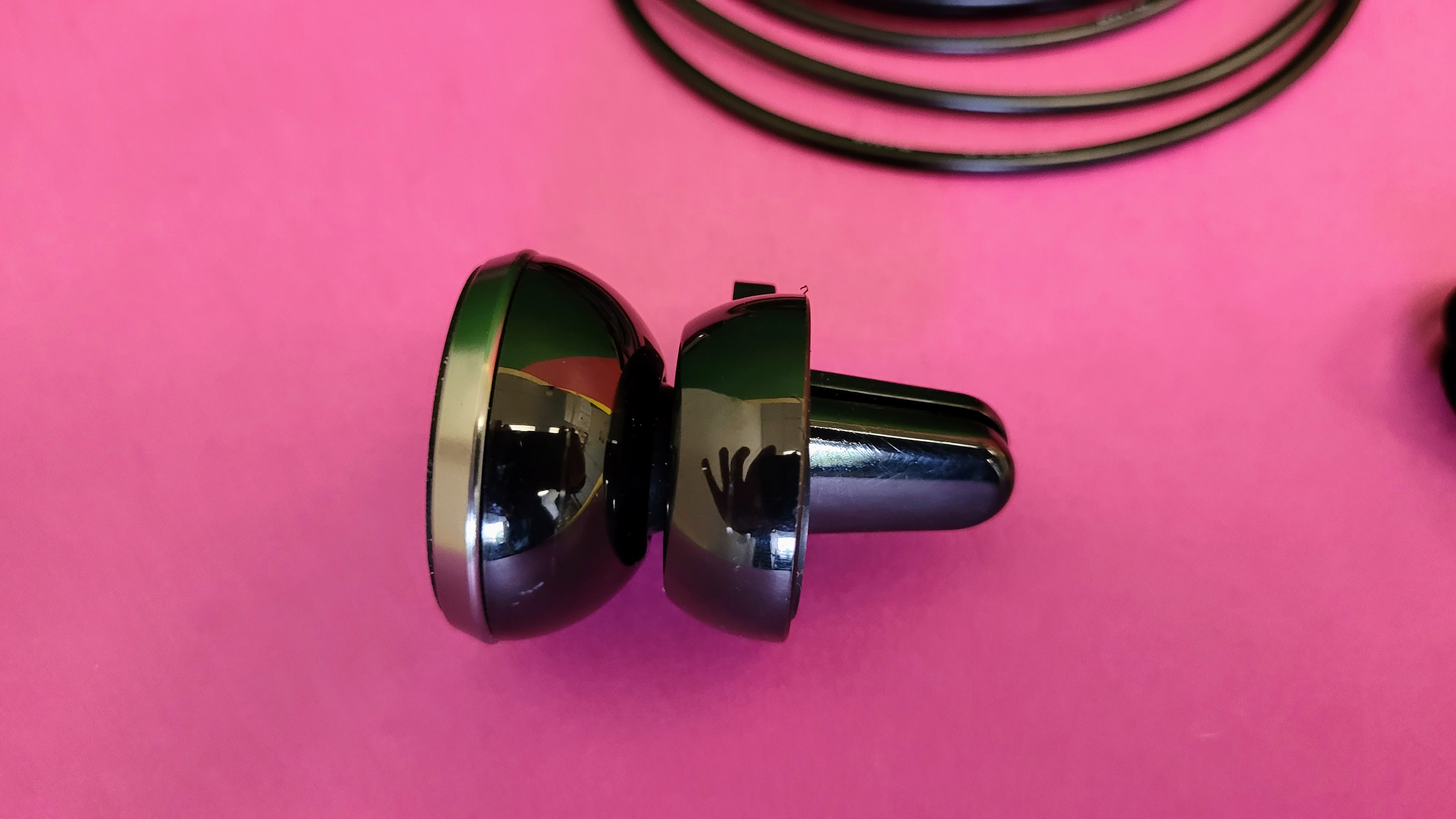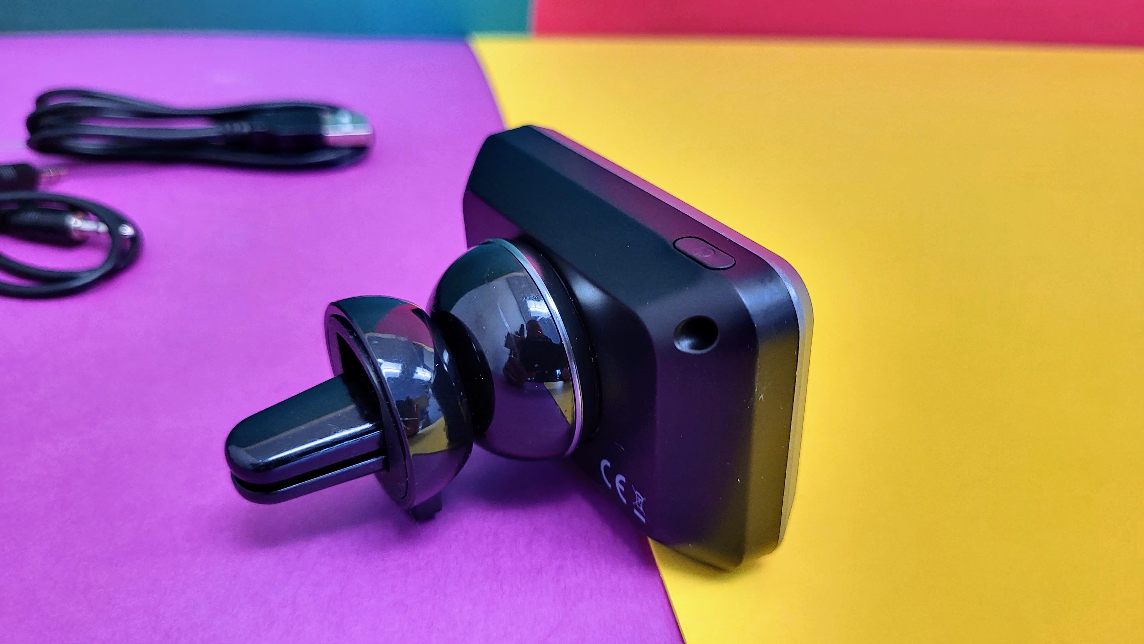 Das Gehäuse ist komplett aus Kunststoff. Das wirkt nicht übermäßig hochwertig, ist aber solide verarbeitet. Auf der Rückseite befindet sich ein rundes Plättchen aus Metall, um den Adapter an einer der beiden Halterungen magnetisch anzubringen. Das ist sehr praktisch und deutlich einfacher als eine Variante zum Einstecken in eine Haltevorrichtung.