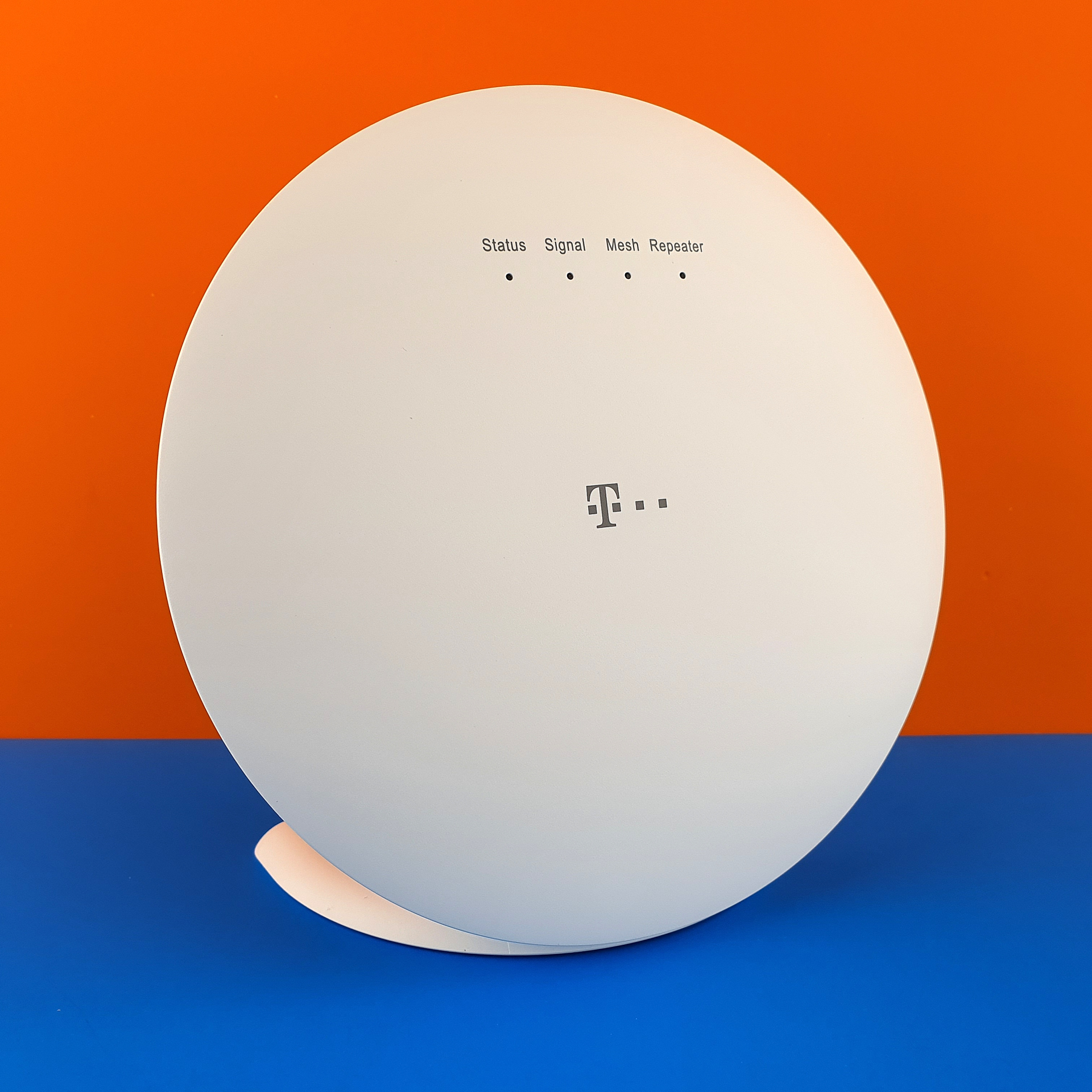 Die runden, weißen Telekom-Funker schauen hübsch aus, sind mit einem Durchmesser von fast 17 cm aber deutlich größer als die meisten jüngeren Repeater, wie etwa Google Nest Wifi (Testbericht) . Neben den Geräten liegen in jeder Schachtel ein weißes LAN-Kabel, ein Netzteil und ein gedrucktes Handbuch. Zieht man den weißen Standfuß ab, kann man den runden Funker auch leicht an die Wand hängen.