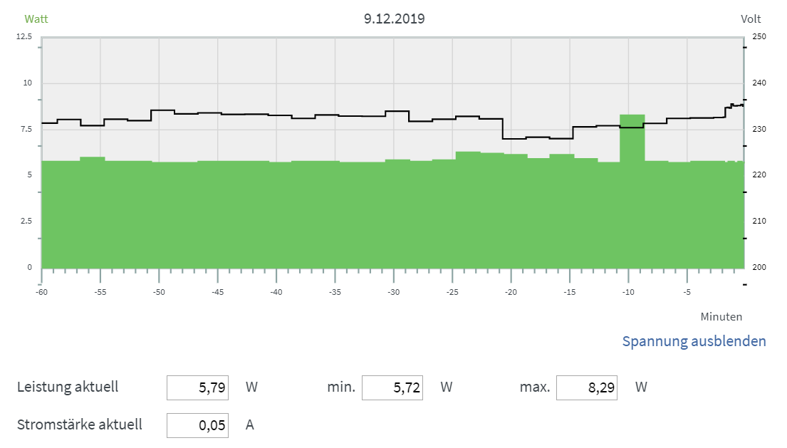 Der voll Mesh-verkoppelte Telekom Basis Funker hat knapp 5,8 Watt im Standby und maximal 8,3 beim Internet-Surfen mit einem Samsung Galaxy Note10+ Smartphone benötigt. Beim Telekom Mesh Repeater waren es knapp 5,3 Watt im Standby und bis zu 6,2 beim Surfen.