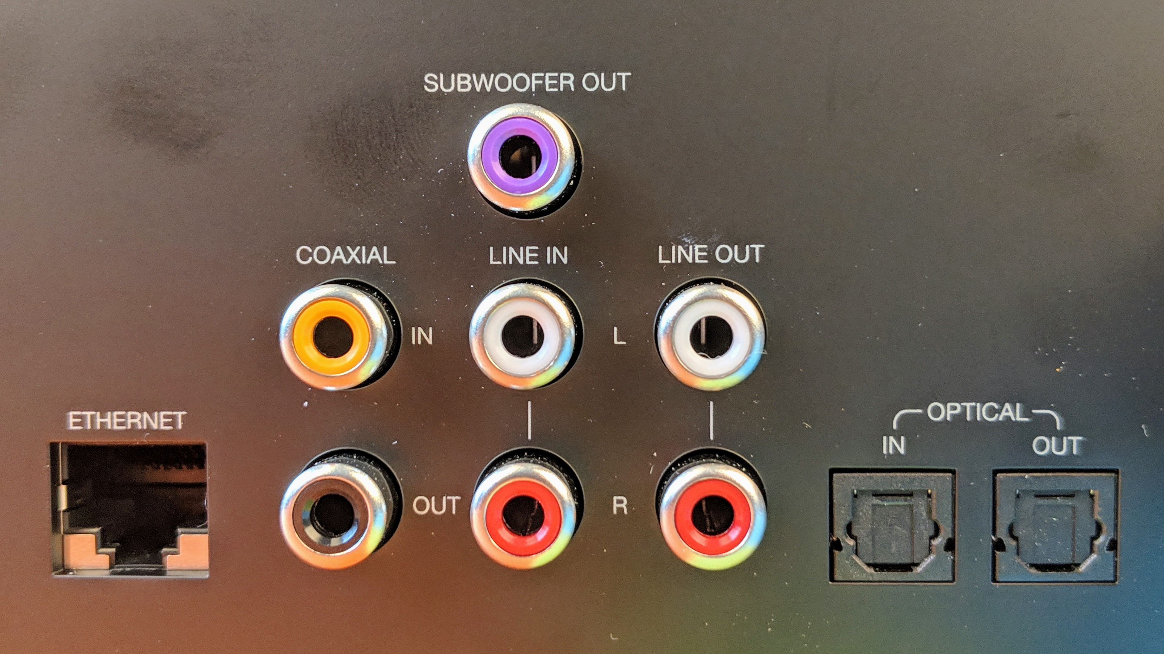 Als Eingangsquellen nutzt der Echo Link Amp zwei Cinch-Stecker für den linken und rechten Audiokanal, einen digitalen Koax-Port und eine optische Toslink-Verbindung. Smartphones und andere externe Audioquellen können den Link Amp auch über Bluetooth (A2DP) ansprechen.
