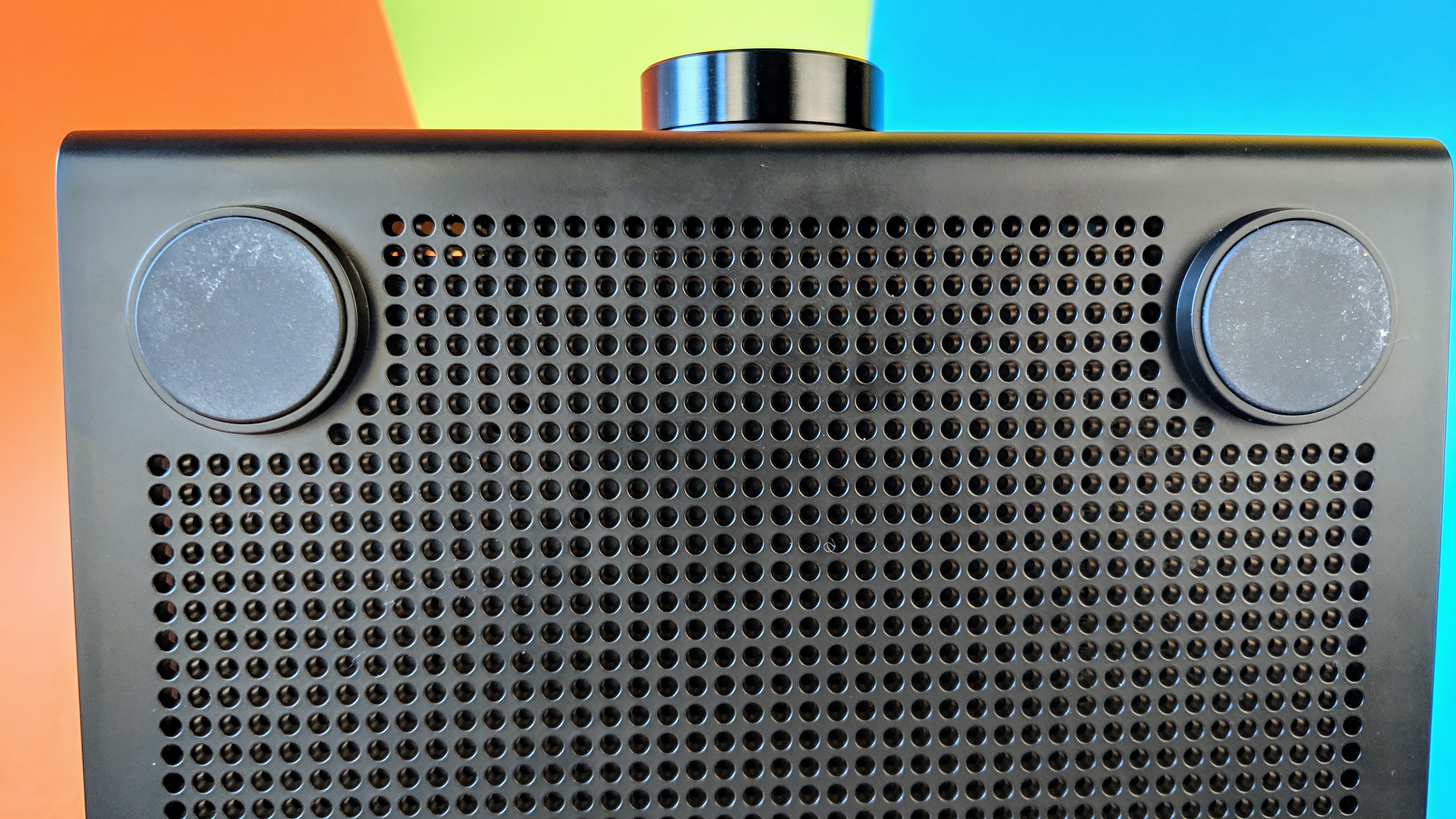 Eine Fernbedienung zur Laustärkeregelung gibt es nicht, genauso wenig kann die Alexa Fernbedienung der 2. Generation eingebunden werden. Diese arbeitet (bisher) nur mit Fire-TV-Geräten zusammen. Immerhin kann man direkt am Gerät über einen optisch ansprechenden und wertig verarbeiteten Metalldrehregler laut und leise stellen. Dabei leuchten sehr schick sonst unsichtbare weiße LEDs durch die matte Kunststofffront.