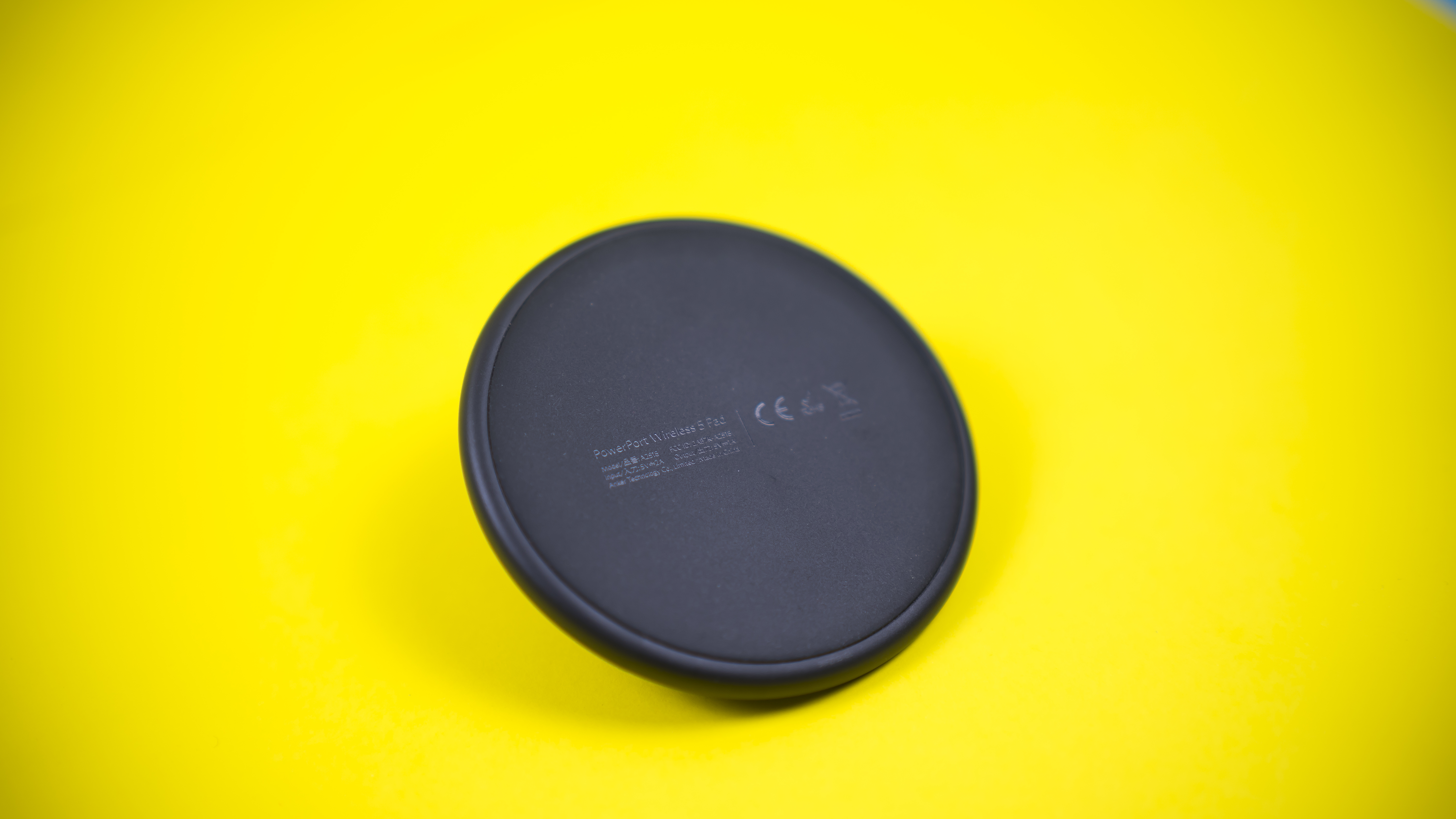Das PowerPort Wireless 5 Pad hat die Form einer runden Scheibe und ist ungefähr so dick wie zehn CD-ROMs. Die genaueren Dimensionen betragen 10 × 10 × 0,9 Zentimeter. Das Gerät hat ein Gewicht von 68 Gramm. Es fühlt sich leicht, aber nicht billig an. Im Gegenteil: Sowohl die untere, als auch obere Fläche sind mit weichem Material überzogen. Das sorgt für Halt, sowohl auf dem Tisch, als auch für das Smartphone. Darunter ist die Ladestation aus hartem Kunststoff gefertigt, und zwar sehr ordentlich: Nichts bewegt sich, keine Spaltmaße, kein Knarzen. Hier gibt es einen Punkt für die Umsetzung bei der Qualität.