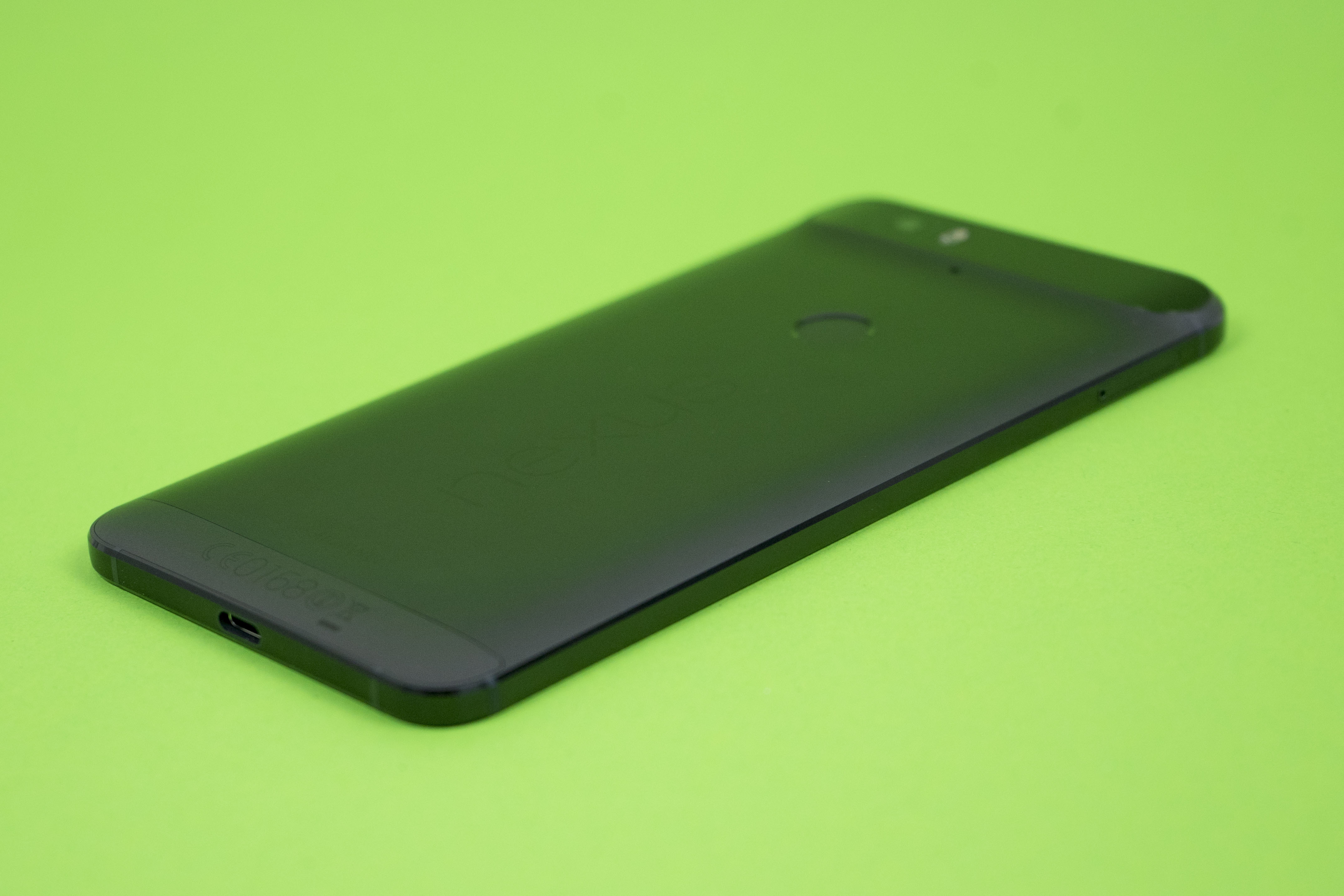 Sprechen wir über das Design: Beim Chassis setzt Huawei auf eloxiertes Aluminium aus der Luft- und Raumfahrt. Es ist an den Rändern geschwungen, um besser in der Hand zu liegen. Die Kanten des Telefons wurden mit einem Diamant abgeschrägt und glänzen bei einem bestimmten Lichtfall. Das Nexus 6P hat ein Gewicht von 178 Gramm und ist 7,3 Millimeter dünn. Dafür, dass es ein verhältnismäßig großes Telefon ist, passt es noch halbwegs gut in die Hand. Allerdings rutscht es etwas; das ist der Nachteil eines Smartphones, dessen Rückseite aus Metall besteht. Das Nexus 6P kommt in den Farben Aluminium, Graphit sowie Kristallweiß auf den Markt. Alle drei Ausführungen sollen auch in Deutschland angeboten werden. Während des Tests ist mir aufgefallen, dass sich Fingerabdrücke auf der Rückseite besonders sichtbar machen. Bei den helleren Ausführungen dürfte dies nicht der Fall sein.