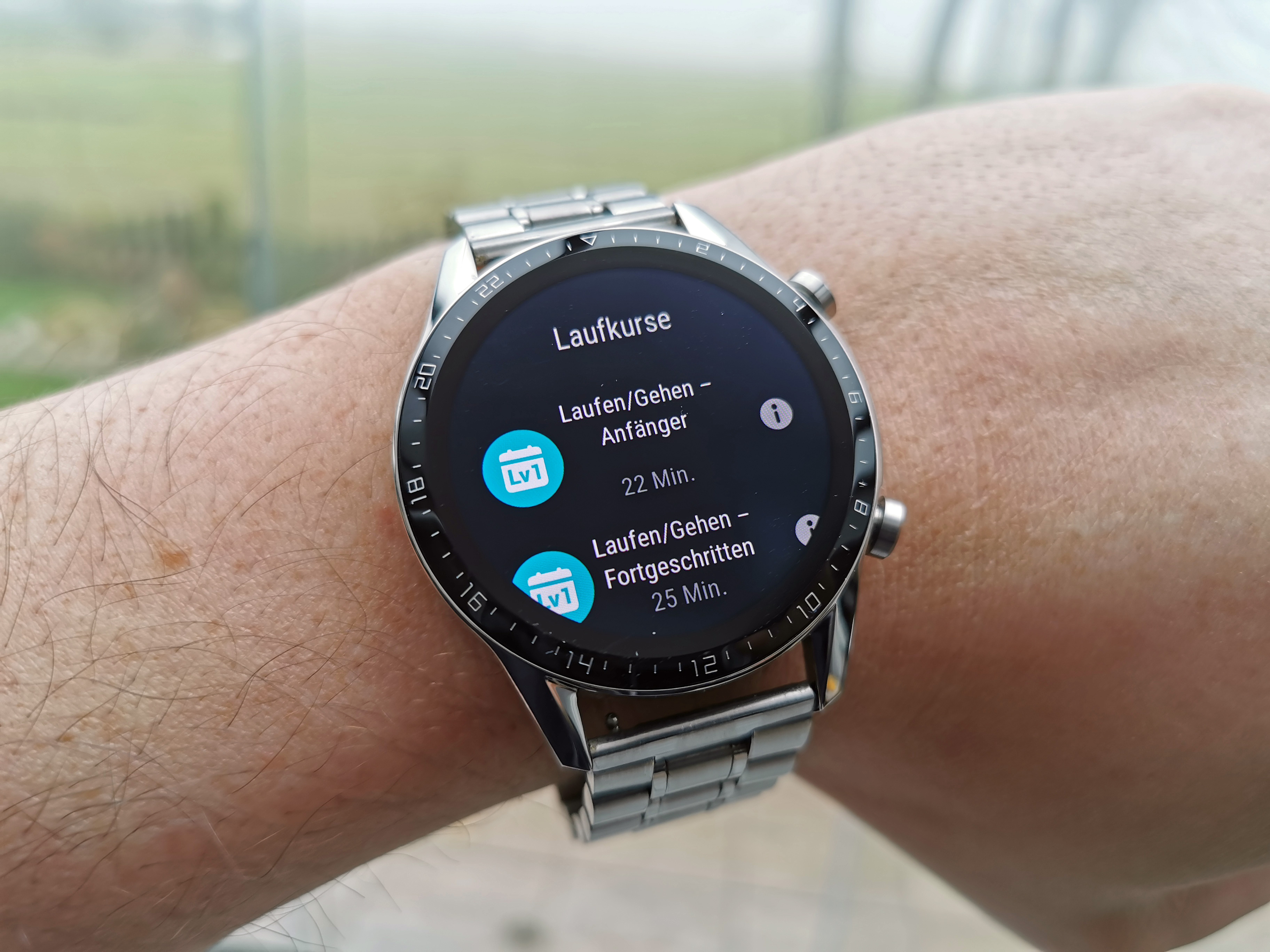 Apropos Training: Die Huawei Watch GT 2 unterscheidet zwischen 15 unterschiedlichen Sportarten wie Laufen, Radfahren, Schwimmen, Bergwandern oder Triathlon. Dabei helfen Pulsmesser, Schrittzähler, GPS und Barometer, die richtigen Werte zu ermitteln. Zudem bietet das Gadget 13 Laufpläne von Anfänger bis Profi, mit denen die Leitungsfähigkeit des Nutzers gesteigert werden soll. Neben Medaillen für bestimmte Erfolge lässt sich als Motivationshilfe auch der sogenannte intelligente Begleiter aktivieren, der nichts anderes als eine imaginäre, vom Nutzer zuvor aufgestellte Zeit ist, die es bei weiteren Läufen zu schlagen gibt. Das erinnert an Rennspiele am Computer, bei denen ein Geisterauto auf der Strecke eingeblendet wird, der zuvor gefahrene eigene Zeiten oder die von Rivalen anzeigt.