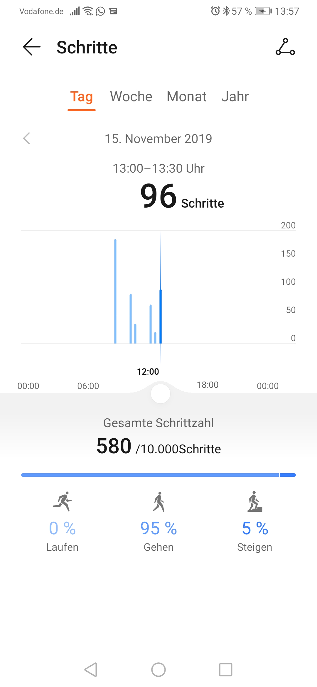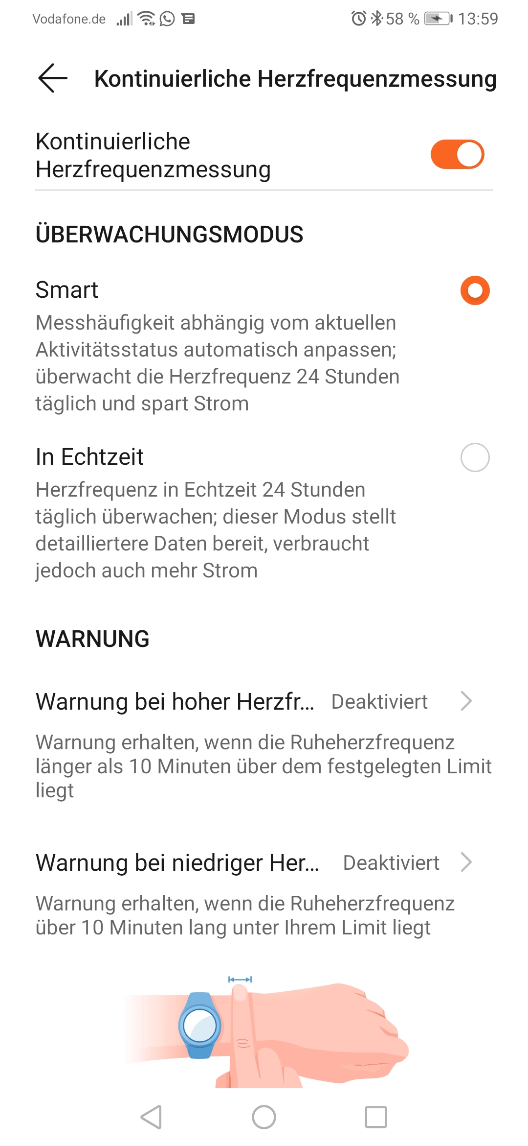 Im Alltag überzeugten uns Schrittzähler und Pulsmessung mit auch im Vergleich zu anderen Fitnestrackern passenden Messungen. Bei sportlicher Aktivität schien der Puls allerdings immer etwas verzögert angegeben zu werden. So kam es bei einer Bergwanderung vor, dass der Tester zwar schon den Puls in seinem inneren Ohr hören konnte, was auf stärkere Belastung hinweist. Ein Blick auf die Uhr im smarten kontinuierlichen Pulsmess-Modus verhieß aber nur eine Frequenz von um 100. Eine Minute später hingegen, nachdem der Tester kurz regenerieren konnte, zeigte die Uhr hingegen einen Puls von um 130. Ein Umstellen der kontinuierlichen Messung von smart auf In Echtzeit könnte das Problem beheben, kostet aber Akkuleistung. Zu finden ist diese Einstellung in der Health-App unter Geräte, einem Tipp auf die Uhr und dann weiter unten Kontinuierliche Herzfrequenzmessung. Die Gesammelten Daten lassen sich derzeit nur mit Google Fit und MyFitnessPal verknüpfen.