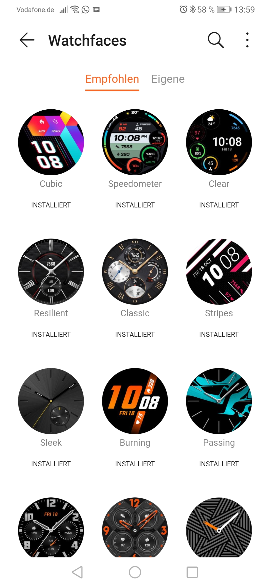 Die Bedienung der Uhr ist leider nicht ganz flüssig. Immer wieder sind leichte Ruckler zu sehen, insgesamt scheint die Framerate bei Bewegungen eher bei rund 20 Bildern pro Sekunde zu liegen. Das ist zwar kein Beinbruch, dass der neue Kirin A1, der die Watch GT 2 antreibt, ruckelt, schmälert aber den guten Eindruck, den sie sonst macht.