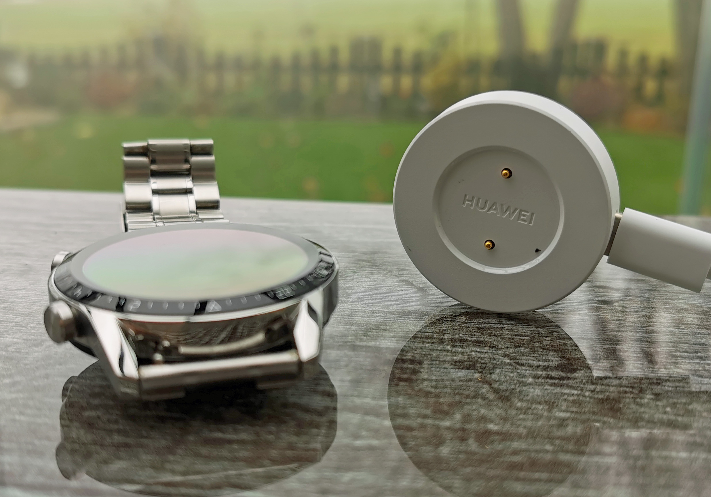 Die Akkulaufzeit ist das Alleinstellungsmerkmal der Huawei Watch GT 2. Der Hersteller spricht bei der 46-Millimeter-Version von Laufzeiten von bis zu 14 Tagen – das dürfte in der Realität kaum zu erreichen sein. Weit davon entfernt ist die echte Laufzeit aber auch nicht. Im Test hielt die GT 2 mit kontinuierlichem Pulstracking und Always-On-Display gute 5 Tage durch, auch eine Woche war mal drin. Bei Bewegungs-gesteuertem Display und moderater Nutzung wurde die Woche locker übertroffen, die Regel waren da eher 1,5 Wochen. Eine Smartwatch mit WearOS oder eine Apple Watch ist von solchen Werten weit entfernt, auch die Samsung Galaxy Watch kommt da nicht heran. Geladen wird die Uhr über einen magnetischen Ladesockel, das dauert bis zu 1, 25 Stunden und geht damit auch ziemlich schnell vonstatten.