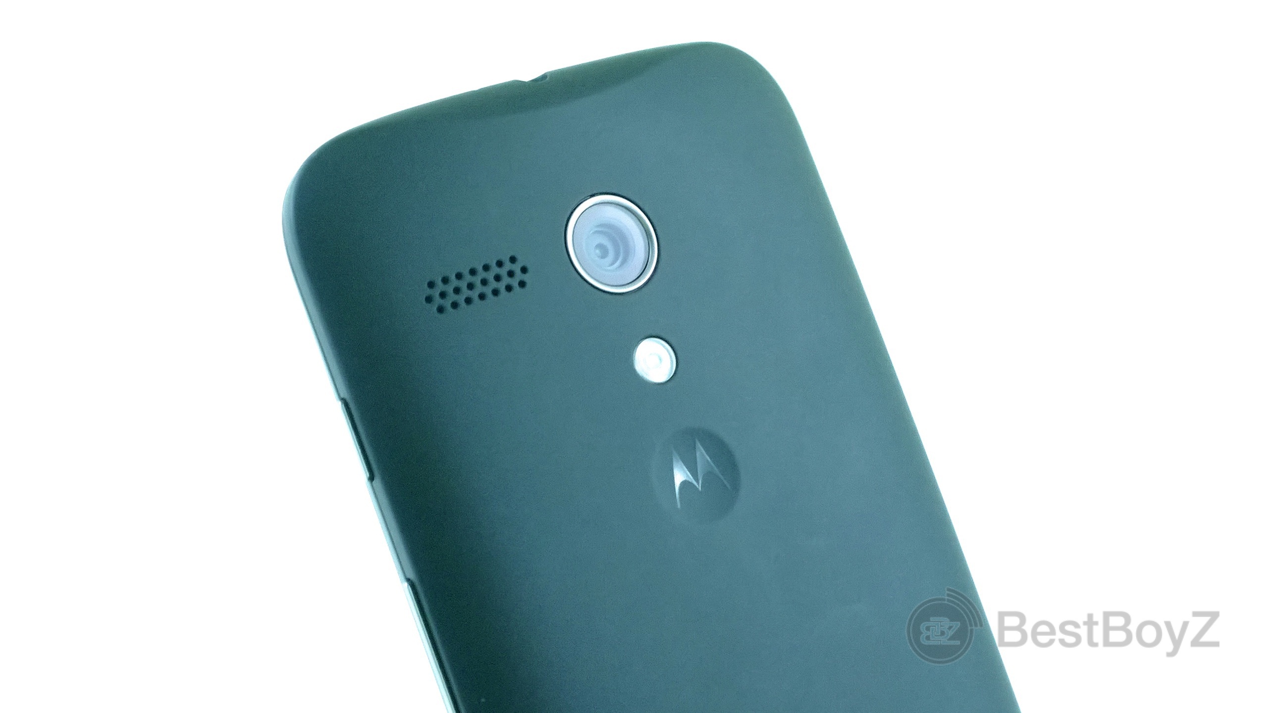 Das Design wurde mehr weniger von dem Moto X übernommen. Es ist direkt und unkompliziert. Die Rückseite ist geschwungen, fast schon oval. Es liegt bequem und komfortabel in der Hand – hat etwas Natürliches an sich. Auf dem Gehäuse steht nirgendwo „Motorola“ oder „Moto G“. Lediglich auf der Rückseite findet man die aktuelle Signatur eines Motorola-Smartphones: Nämlich das eingedrückte Emblem. Das Schutzglas auf der vorderen Seite ist Corning Gorilla Glass. Insgesamt wirkt das Telefon robust, solide und macht einen widerstandsfähigen Eindruck. Es ist nicht wasserdicht, aber wasserabweisend.