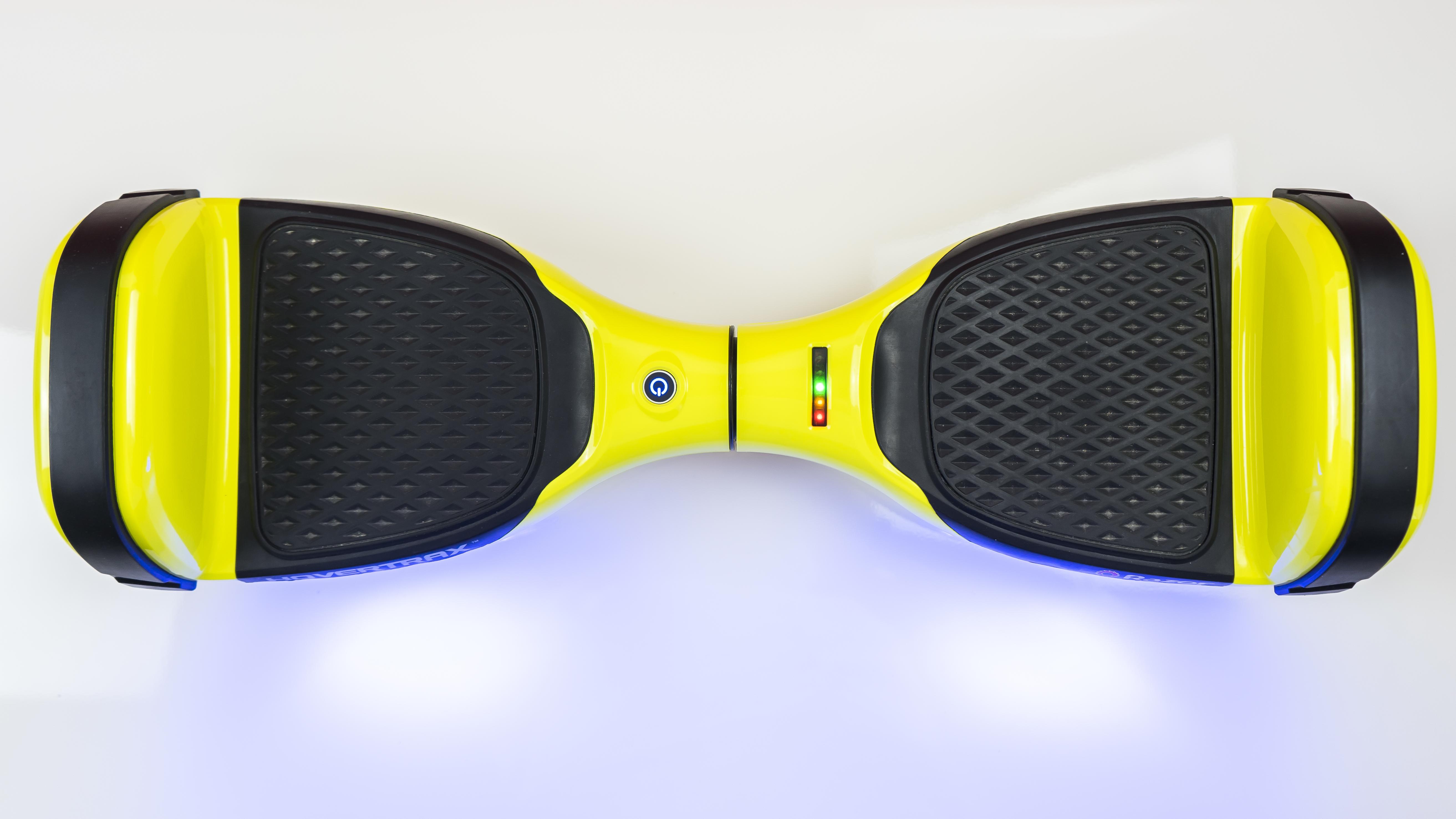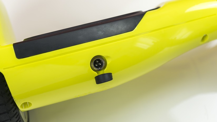 Für jeden etwas dabei: Razor bietet seinen Hovertrax 2.0 in fünf Farben an. Neben der dezenten Optik in Schwarz und Weiß stehen auch noch Blau, Rot sowie das von getestete Gelb zur Verfügung. Gut gefallen hat uns die makellose Verarbeitung des Boards: Im Vergleich zu Noname-Produkten ist die Ausführung bei dem Marken-E-Board sauber. An den Kotflügeln besitzt es je Seite einen Stoßfänger, der das Gehäuse beim Überschlagen um die Querachse vor Kratzern schützt. Das Gehäuse des Hovertrax 2.0 ist aus hartem Kunststoff, fühlt sich aber nicht minderwertig an. Es ist poliert und wirkt einwandfrei. Auch die gummierten Flächen für die Füße bieten einen festen Halt, selbst bei Feuchtigkeit. Am Gehäuse, das eine Last bis zu 100 Kilogramm tragen kann, knarzt oder wackelt nichts.
